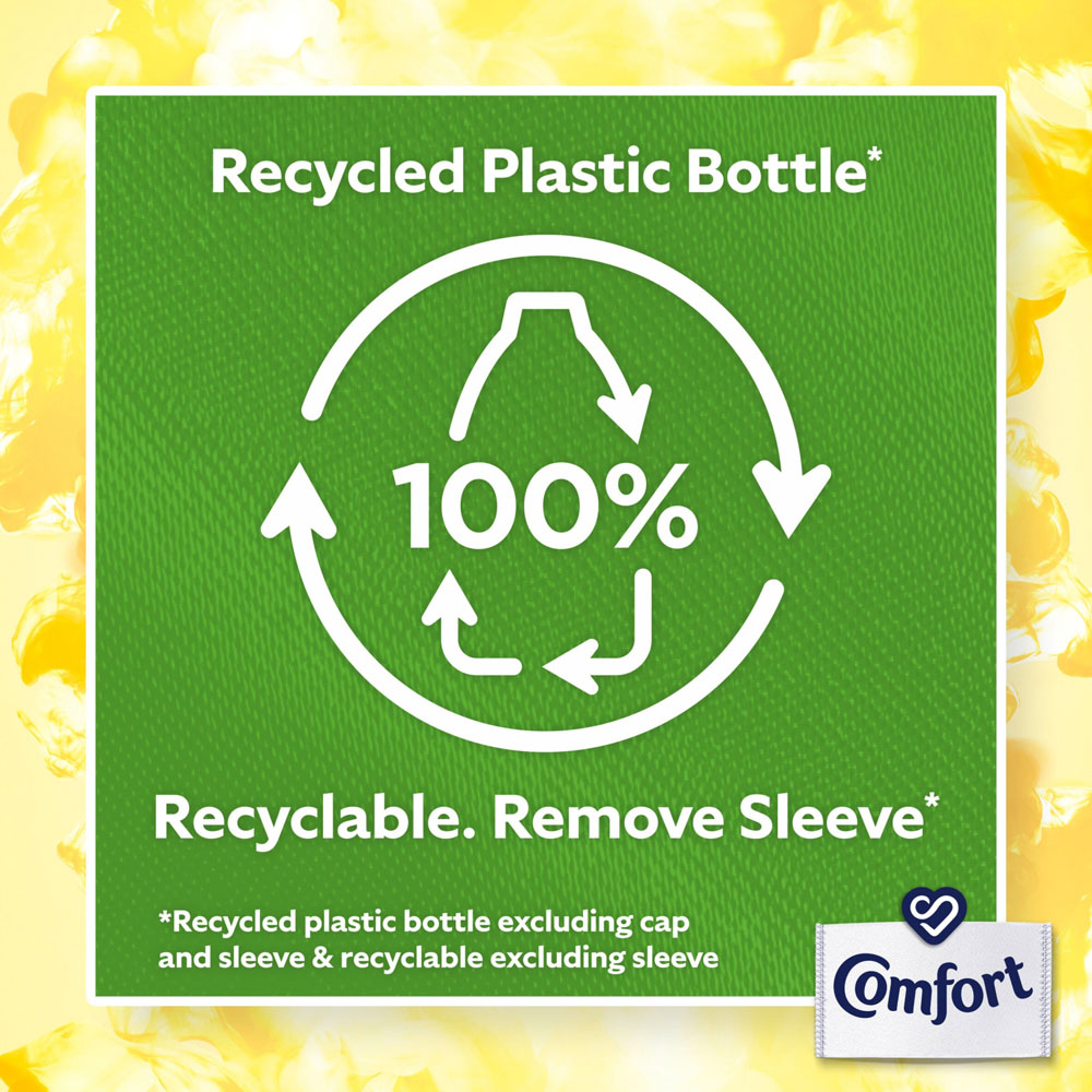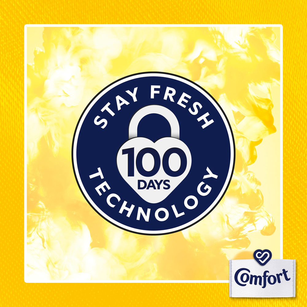 We know how much you love your clothes. We love clothes too, and we want to help you care for them. That's why we've developed Comfort Sunshiny Days Fabric Conditioner to keep clothes fresh and clean long after each wash. This fabric softener features Stay Fresh technology, designed to lock in fragrance, to deliver 100 days of freshness and fragrance. This fabric softener features a long-lasting fragrance that combines zesty orange and floral jasmine together with a musky cedarwood base that will leave your clothes smelling fresh and clean. Keep in mind that the Comfort Fabric Conditioner bottle is also 100% recyclable. Add Comfort to your wash to help protect your clothes and leave you feeling great inside and outside every day. Comfort Fabric Conditioner also ensures your clothes smell their very best, wash after wash. Together, we can help protect the clothes you love. Features Enjoy 100 days of freshness and fragrance with Comfort Sunshiny Days Fabric Conditioner Comfort features Stay Fresh technology which is designed to lock in fragrance, giving clothes 100 days of freshness. This Sunshiny Days fabric softener leaves your clothes with sensational long-lasting fragrance notes of zesty orange and floral jasmine with a musky cedarwood base Let this fabric conditioner drift you off into a summery daydream, carried away by that floaty cotton dress to daisy-covered meadows kissed by the sun The bottle for this Comfort Fabric Conditioner is 100% recyclable Let the fresh fragrance burst of Comfort Fabric Conditioner take you to a happy place because when your clothes smell good, you feel good all day long Package Includes: Comfort Sunshiny Days Fabric Conditioner, 160 Washes.