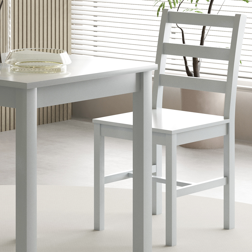 Create a cosy dining space with this stylish and functional Comfy Living 2 Seater Wooden Dining Set Grey. It is perfect for intimate meals. The grey table boasts a sleek, rectangular wood top that's durable and elegant. Two sturdy grey ladder-back chairs, with contoured seats, offer comfort and support for every occasion.