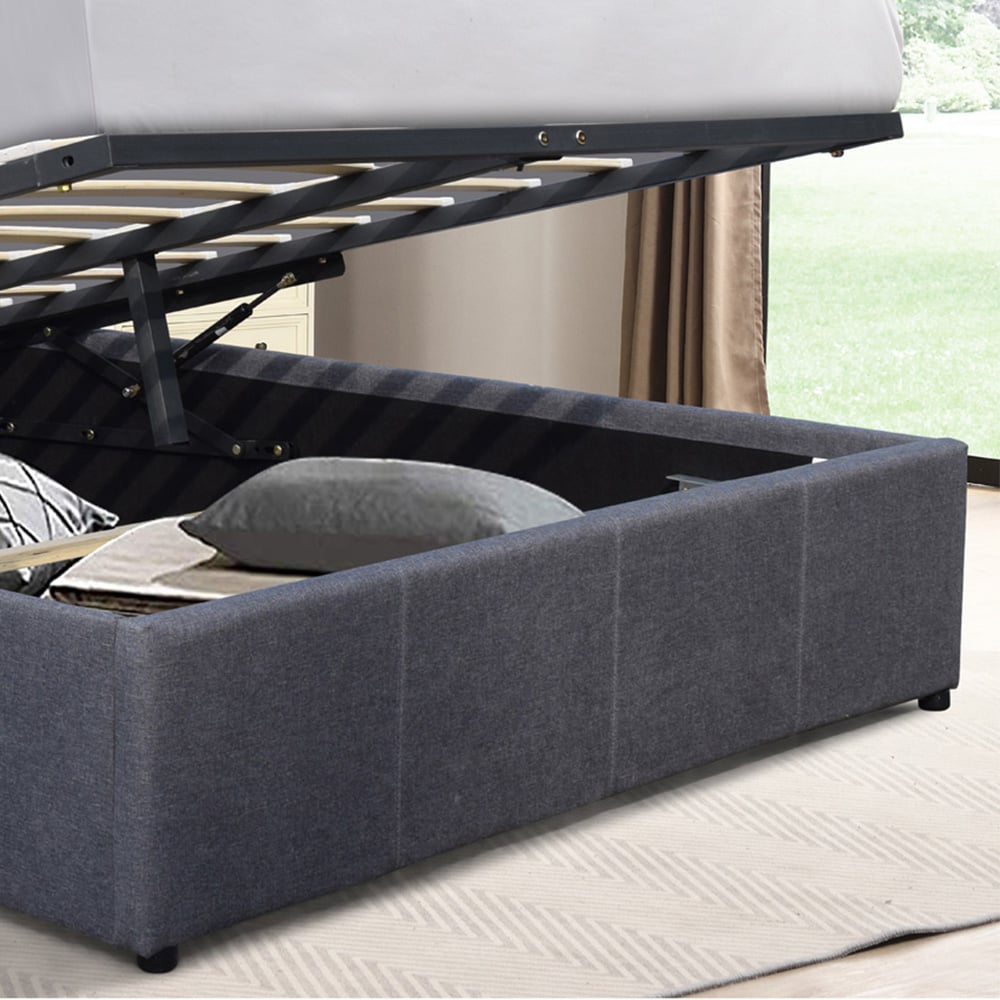 Experience the perfect blend of style and comfort with Comfy Living King Dark Grey Ottoman Bed Frame With LED. This 5ft modern storage bedframe is upholstered in a soft light grey hopsack fabric. The frame features a large panelled headboard with stitching detail and a low footboard with understated tapered peg feet to add a contemporary touch to any bedroom. It has an LED colour changing display which illuminates a variety of colours, or can be made static on one colour of your choosing. LED Lights are built into the headboard and simply need plugging into a standard 230v socket. Which this bed you'll also receive power adaptor, cable and plug and remote controller. The remote is wireless and can be used to select the various light features. This frame features an innovative storage space under the bed which can be accessed by lifting the metal frame by a fabric handle. The gas hydraulics will enable you to lift with only a slight effort. Please note that this is straight to floor storage.