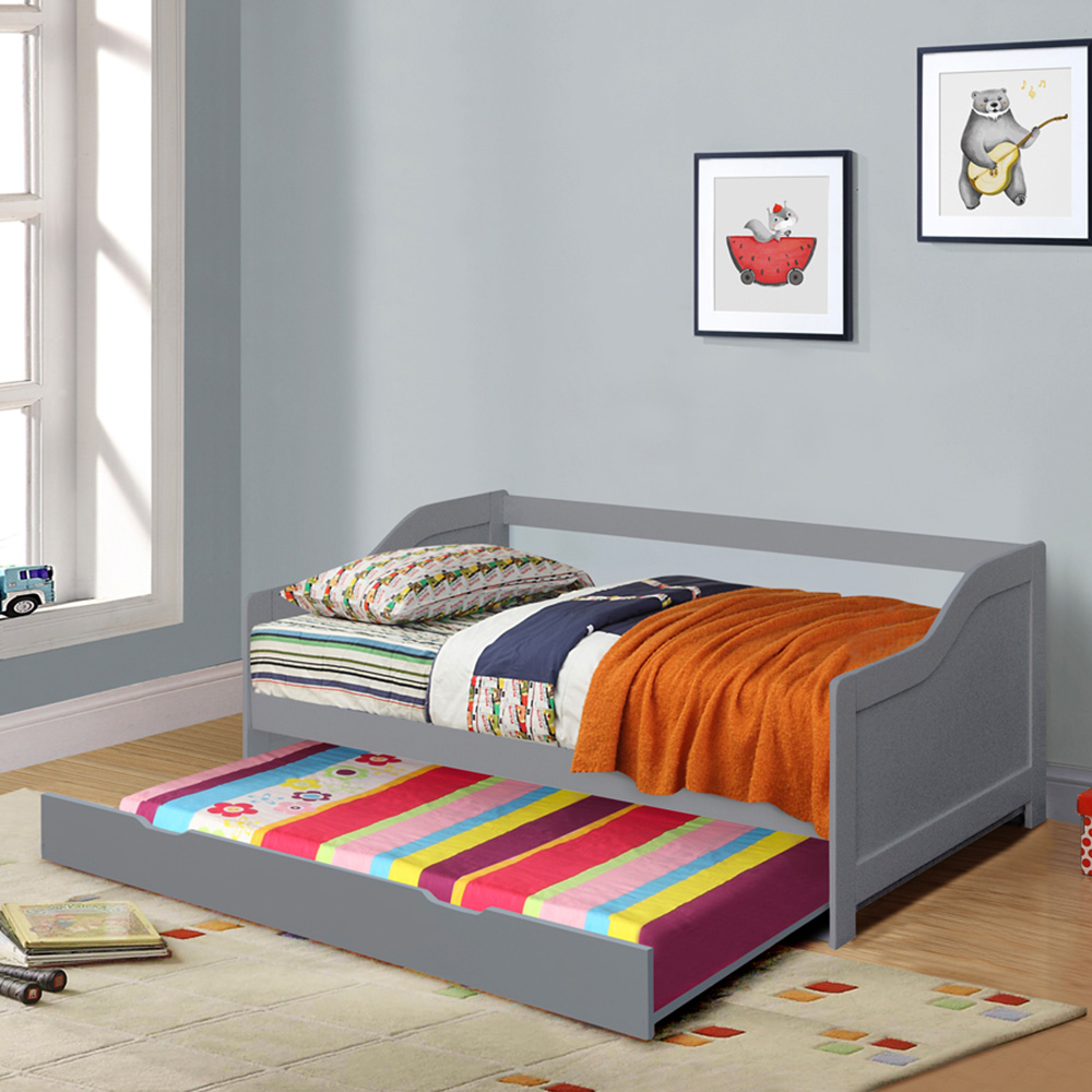 Turn your bedroom into a welcoming space with the Comfy Living Single Grey Wooden Bed with Trundle. This stylish grey wooden trundle bed is made from high-quality wood, offering both durability and comfort. It is equipped with a pull-out trundle which provides an extra sleeping space, making it perfect for sleepovers or guests. The clean lines and minimalist design allow it to blend with any décor style with ease. The roomy sleeping area ensures a comfortable night's rest. Improve your room interior with this practical yet stylish trundle bed. Its dimensions are approximately 66 x 97 x 194cm. Please keep in mind that all dimensions are approximate and may vary slightly.