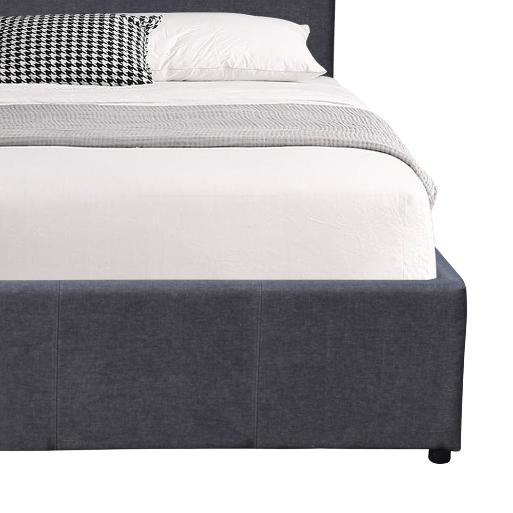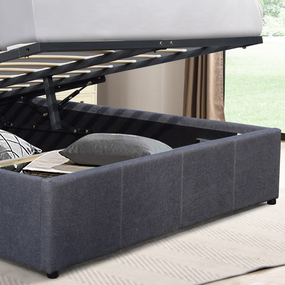Experience the perfect blend of style and comfort with Comfy Living Small Double Dark Grey Ottoman Bed Frame With LED. This 4ft modern storage bedframe is upholstered in a soft light grey hopsack fabric. The frame features a large panelled headboard with stitching detail and a low footboard with understated tapered peg feet to add a contemporary touch to any bedroom. It has an LED colour changing display which illuminates a variety of colours, or can be made static on one colour of your choosing. LED Lights are built into the headboard and simply need plugging into a standard 230v socket. Which this bed you'll also receive power adaptor, cable and plug and remote controller. The remote is wireless and can be used to select the various light features. This frame features an innovative storage space under the bed which can be accessed by lifting the metal frame by a fabric handle. The gas hydraulics will enable you to lift with only a slight effort. Please note that this is straight to floor storage.