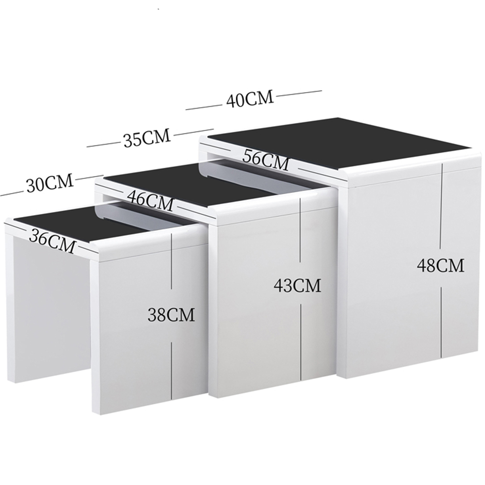 Comfy Living White and Black Glass Nest of Tables Set of 3