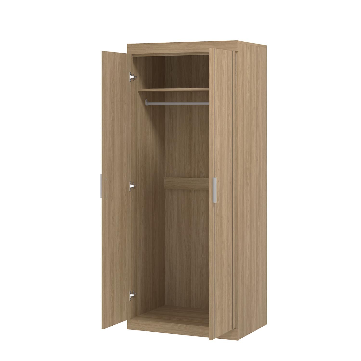 The perfect place to store your clothing, this Compton 2 Door Wardrobe prevents your room from filling with clutter. This contemporary style wardrobe looks smart in almost any decorative scheme thanks to its classic wood effect and sleek handles. Featuring two doors, an internal hanging rail, and a shelf, this beautifully designed wardrobe is sure to look fantastic in your room.