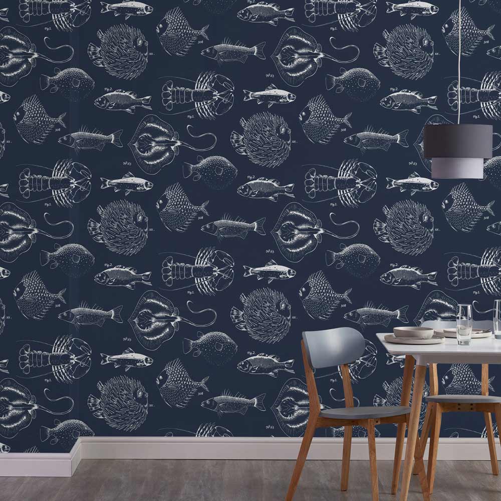 Give a fun touch to your home decor with this deep navy wallpaper by Graham and Brown. Transport yourself to the depths of the ocean with the deep navy tone. The detailed illustrative drawings of this design give it an overall sophisticated feel! Our contour anti-bact range features revolutionary anti-bacterial properties. It’s great for reducing bacteria around the home as well as being super durable to handle everyday bathroom and kitchen activities. Application: Paste the Wall, Design Match: Offset, Design Repeat: 64cm, Roll Length: 10m, Roll Width: 52cm.