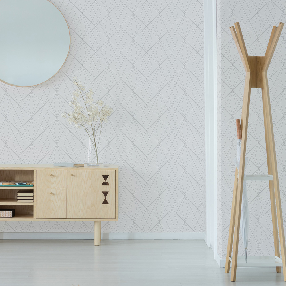 Decorate your home walls with the Contour Laser White and Silver Wallpaper. This modern, laser-cut geometric design offers an edgy aesthetic suitable for any room. Its fresh and clean colour scheme enhances its contemporary appeal, making it a versatile choice for various spaces. The wallpaper covers the minor imperfections of your wall, giving it a polished new look that attracts the attention of your guests.