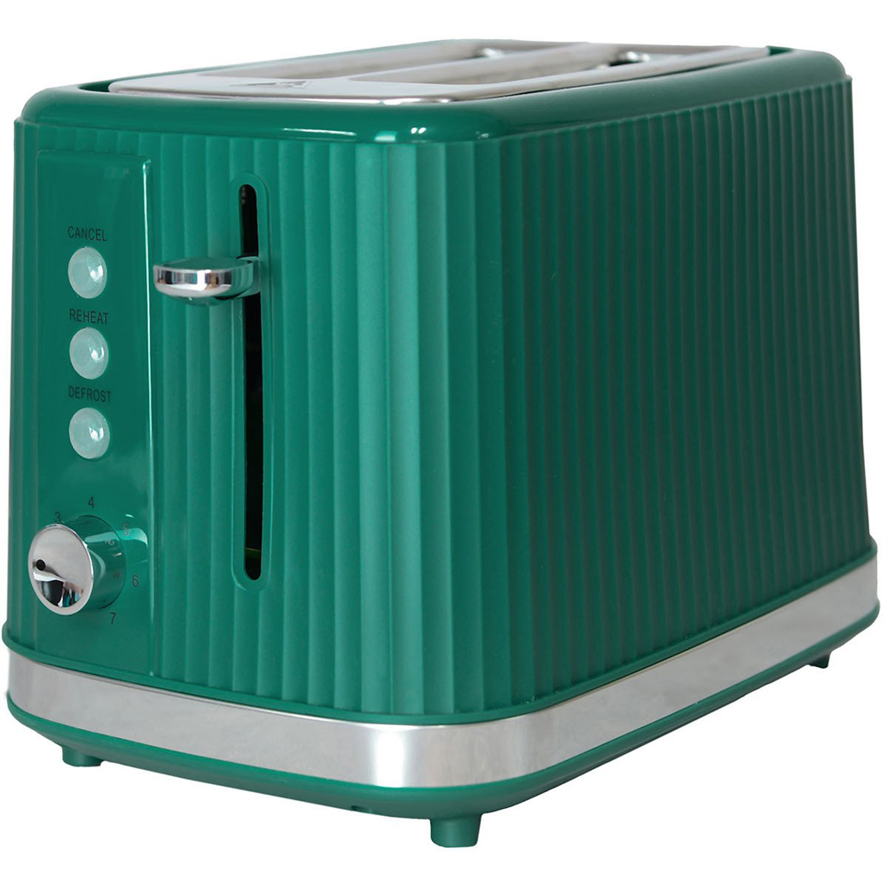 Featuring a trendy contour striped design, this Contour Two Slot Plastic Toaster will make a wonderful addition to modern kitchens. This handy toaster features cancel, defrost and reheat buttons, adjustable toaster time dial and a selt centerting function. With a matching kettle available, you can have a beautifully coordinated kitchen countertop.