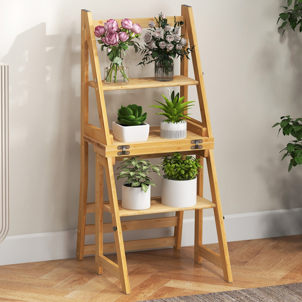 Experience versatility at its best with the Costway Adults Natural Convertible Step Stool and Chair. This innovative piece seamlessly transitions from a cosy chair to a robust ladder, equipped with safety locks to ensure your security while in use. Crafted from natural bamboo, it not only offers exceptional resistance to wear, cracking, and fading but also supports a weight of up to 150 kg. Whether you need a comfortable seat, a sturdy step ladder, or a stylish stand for plants and displays, this multifunctional furniture piece is an excellent addition to any room.