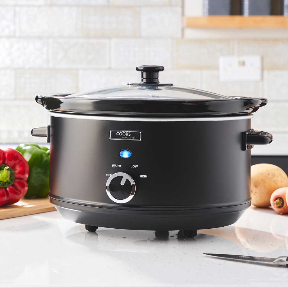 Elevate your cooking experience with Cooks Professional 3.5L Black Stainless Steel Slow Cooker with Removable Ceramic Pot Bowl. This analogue slow cooker allows adjusting your cooking settings with ease. It ensures your dishes are cooked just how you want. This sleek, high-quality satin black paint finish exudes sophistication. It features a removable ceramic bowl that is dishwasher safe for easy cleaning. The cooker harnesses a robust 160W power to deliver efficient, budget-friendly cooking. It includes a cool-touch handle for safety and convenience. It allows you to move your cooker from the kitchen to the dining table with ease. The cooker also includes a transparent glass lid that allows you to watch your culinary masterpiece being made. The slow cooker also has a ‘keep-warm’ function, for keeping already cooked food warmed throughout.