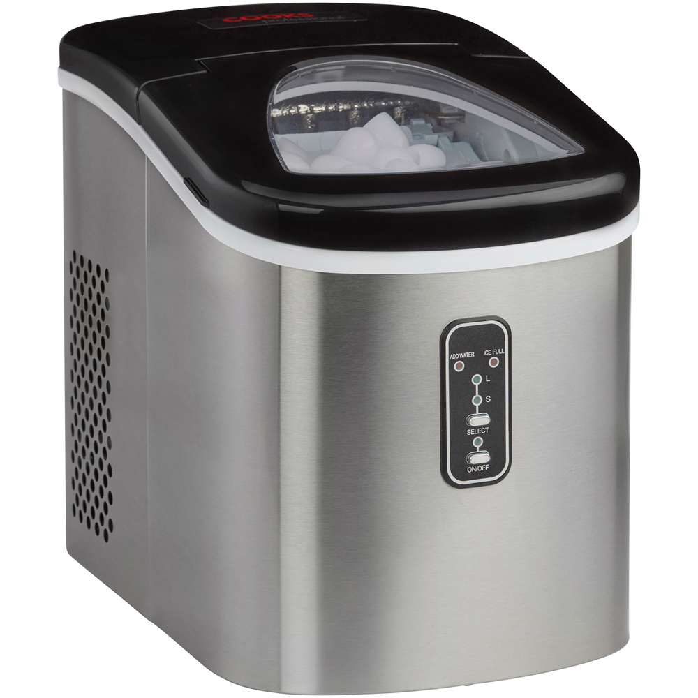 Enjoy cold refreshing drinks and beverages with Cooks Professional Silver Automatic Ice Maker. This easy-to-use machine will give you ice in as little as six minutes and can make either small or large ice cubes. The machine also features a transparent viewing window to check on the progress of the ice. With a 2.2-litre water tank capacity - it comes with a daily production capacity of 13 kilograms in 24 hours. It has a stylish design and is the perfect gadget for barbeques, parties or in offices, and it even comes with a free ice scoop. Usage: No plumbing is required; Simply plug into a mains power socket, fill it with water and let it do the rest for you. Note: The ice-making cycle lasts 6 to 13 minutes, depending on the ice cube size and the room temperature. The recommended room temperature for use is 10 degrees Celsius to 43 degrees Celsius. Specifications: Dimensions: D25 x W34 x H33cm. Weight: 7.8kg. Power cord length: 2m. 220-240V / 50Hz. Model no: G2797.