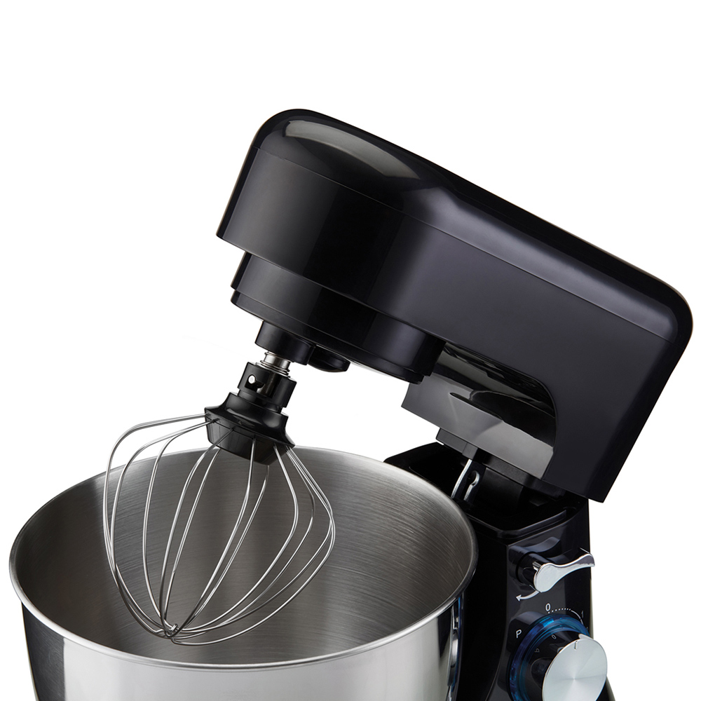 Create a range of tasty treats from the comfort of your own home with this stylish, multifunctional G3136 Black Stand Mixer from Cooks Professional. Ideal for preparing fluffy meringues, bread dough, cake mix and more. The powerful 1000W motor takes the hard work and stress out of baking, and the large 4.5L stainless steel bowl ensures there is plenty of room, whether you are making a large loaf of bread or some little cupcakes. This stand mixer is typically smaller in size but doesn’t compromise on performance. With its 4.5L bowl and 1000W motor, you still get the large capacity and power of a bigger machine without the loss of the kitchen workspace. It even comes with four stoppers on the bottom to prevent it from slipping on the counter whilst you work. This stand mixer has a tilting head for easy removal of the bowl. Simply flick the switch, and the head will automatically open, and it will lock, so you don’t have to worry about it coming down whilst removing the bowl. Then choose the perfect tool for your recipe, add the ingredients to the bowl as per your instructions, and use the variable speed settings one-eight, which range from slow stirring for combining up to fast speeds for whipping or mixing egg whites, or select the pulse function to achieve the perfect mix. The mixer is supplied with a flat beater for normal to heavy mixtures such as cakes, biscuits and pastry, a whisk for egg whites and other mixtures that need aerating, and a dough hook for bread mixtures. The stand mixer is also supplied with a handy splash guard with an opening to add ingredients. If you’re an avid baker or just like to make the occasional loaf of bread, then this stand mixer will not disappoint, providing a fun activity for all the family. Dimensions: L33.5 x W21.5 x H28cm. Weight: 3.43kg. Power cord length: 93cm.