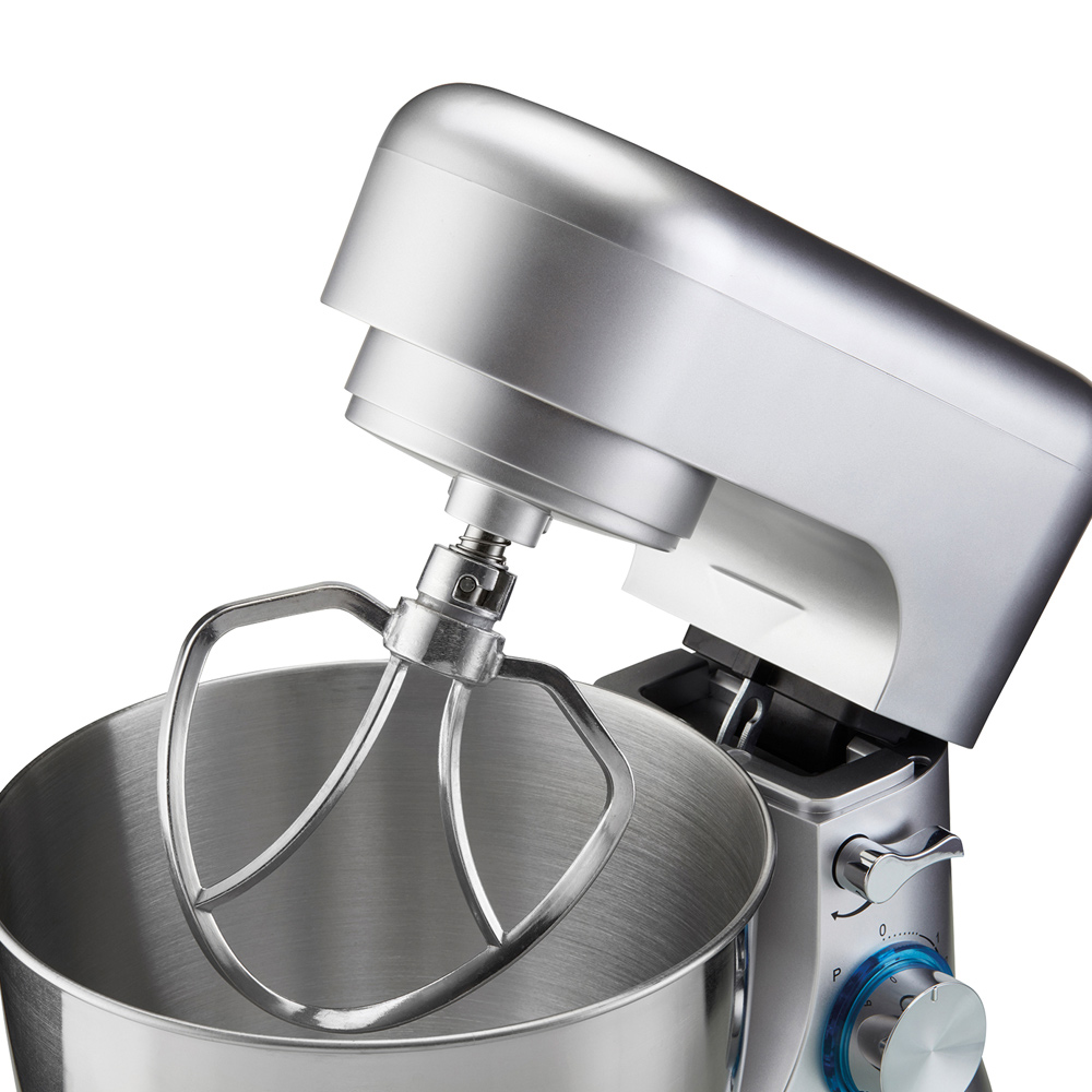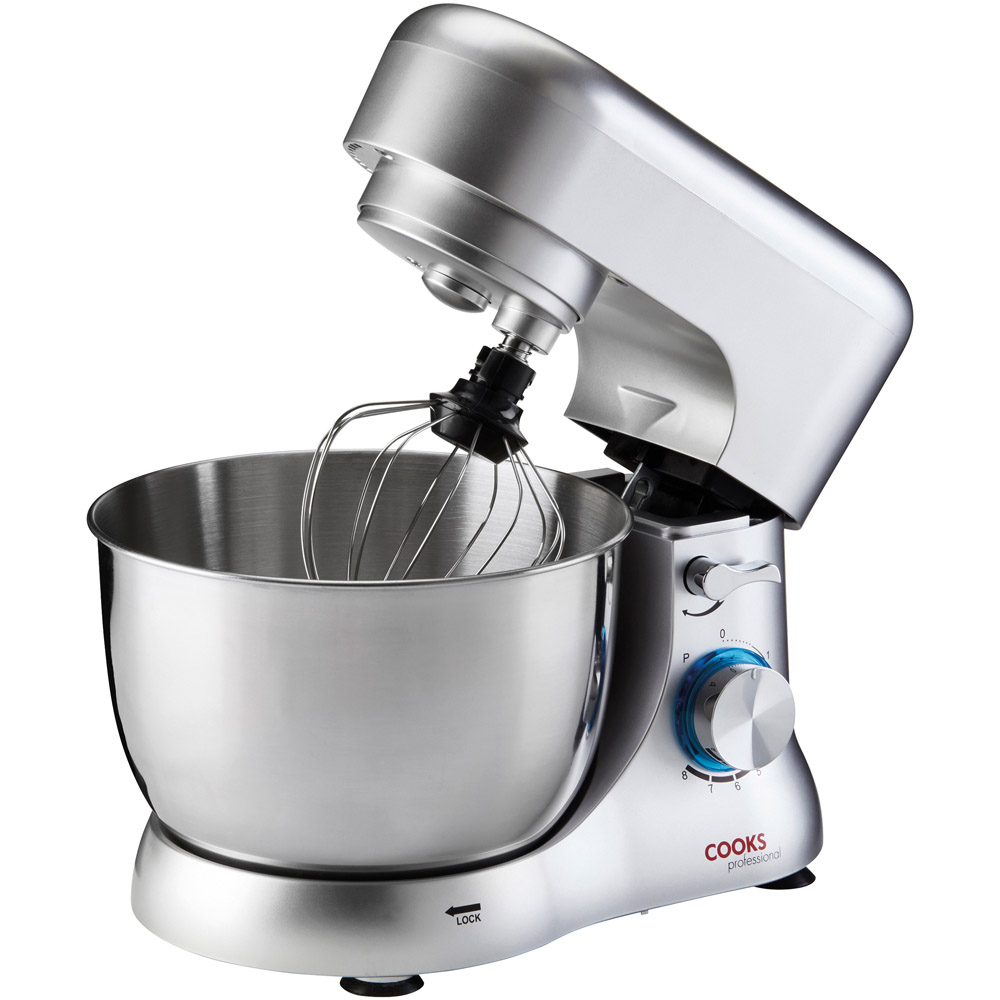 Create a range of tasty treats from the comfort of your own home with this stylish, multifunctional G3137 Silver Stand Mixer from Cooks Professional. Ideal for preparing fluffy meringues, bread dough, cake mix and more. The powerful 1000W motor takes the hard work and stress out of baking, and the large 4.5L stainless steel bowl ensures there is plenty of room, whether you are making a large loaf of bread or some little cupcakes. This stand mixer is typically smaller in size but doesn’t compromise on performance. With its 4.5L bowl and 1000W motor, you still get the large capacity and power of a bigger machine without the loss of the kitchen workspace. It even comes with four stoppers on the bottom to prevent it from slipping on the counter whilst you work. This stand mixer has a tilting head for easy removal of the bowl. Simply flick the switch, and the head will automatically open, and it will lock, so you don’t have to worry about it coming down whilst removing the bowl. Then choose the perfect tool for your recipe, add the ingredients to the bowl as per your instructions, and use the variable speed settings one-eight, which range from slow stirring for combining up to fast speeds for whipping or mixing egg whites, or select the pulse function to achieve the perfect mix. The mixer is supplied with a flat beater for normal to heavy mixtures such as cakes, biscuits and pastry, a whisk for egg whites and other mixtures that need aerating, and a dough hook for bread mixtures. The stand mixer is also supplied with a handy splash guard with an opening to add ingredients. If you’re an avid baker or just like to make the occasional loaf of bread, then this stand mixer will not disappoint, providing a fun activity for all the family. Dimensions: L33.5 x W21.5 x H28cm. Weight: 3.43kg. Power cord length: 93cm.