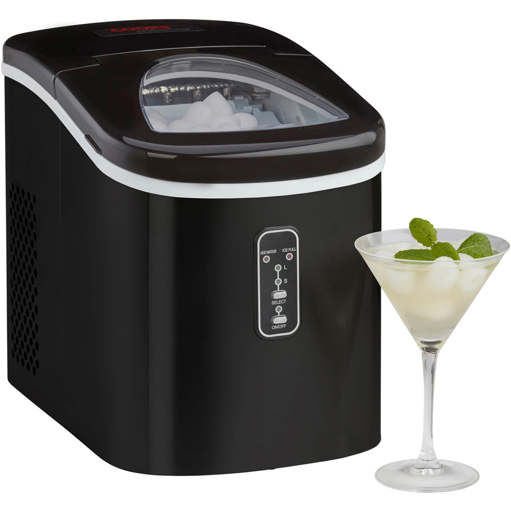 Make sure your party guests never go without a cold drink with the ice maker from Cooks Professional. This easy-to-use machine will give you ice in as little as six minutes and can make small or large ice cubes. It has an impressive production capacity of 13kg in 24 hours. No plumbing is required; fill the water tank, replace the ice basket, turn it on, select the cube size, and enjoy easy-to-use, no-plumbing cubes. The machine will alert you if the water runs out and tell you when the ice is ready. The ice-making cycle lasts between 6-13 minutes, depending on your selected cube size. This compact ice maker is stylish and comes in red or silver to suit any kitchen. It is the perfect gadget for barbeques, parties or in offices, and it even comes with a free ice scoop. The machine also features a transparent viewing window to check on the progress of the ice. Please note: The ice-making cycle lasts 6-13 minutes, depending on the ice cube size and the room temperature. The recommended room temperature for use is 10 °C- 43°C. Model No. K189.