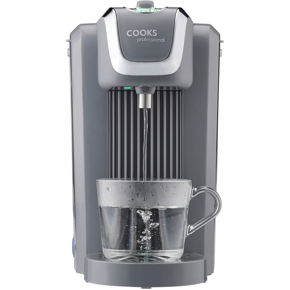 Get instant hot water with the Cooks Professional K401 2.7L Grey and Silver Digital Hot Water Dispenser Instant Kettle. This 2600W fast boil kettle is energy-efficient and ensures your hot water is ready in seconds. With an impressive capacity of more than 2.5L, it is ideal for large families or busy offices. The rated voltage of AC 220-240V and a frequency of 50/60Hz ensures its reliable performance whenever you need it. The manual stop function allows full control over the amount of water you require. It is also easy to refill by opening the lid to top up the tank or removing it using the built-in carry handle. With the lid removed, you can easily fill it up directly from the tap. The hot water dispenser is compact and an easy addition to your counter with the dimensions L27.2 x W18.5 x 30.6cm. It features a removable drip tray to catch spills and lifts off effortlessly for easy cleaning. It includes an 88cm power cord, allowing freedom to fit where it feels right.