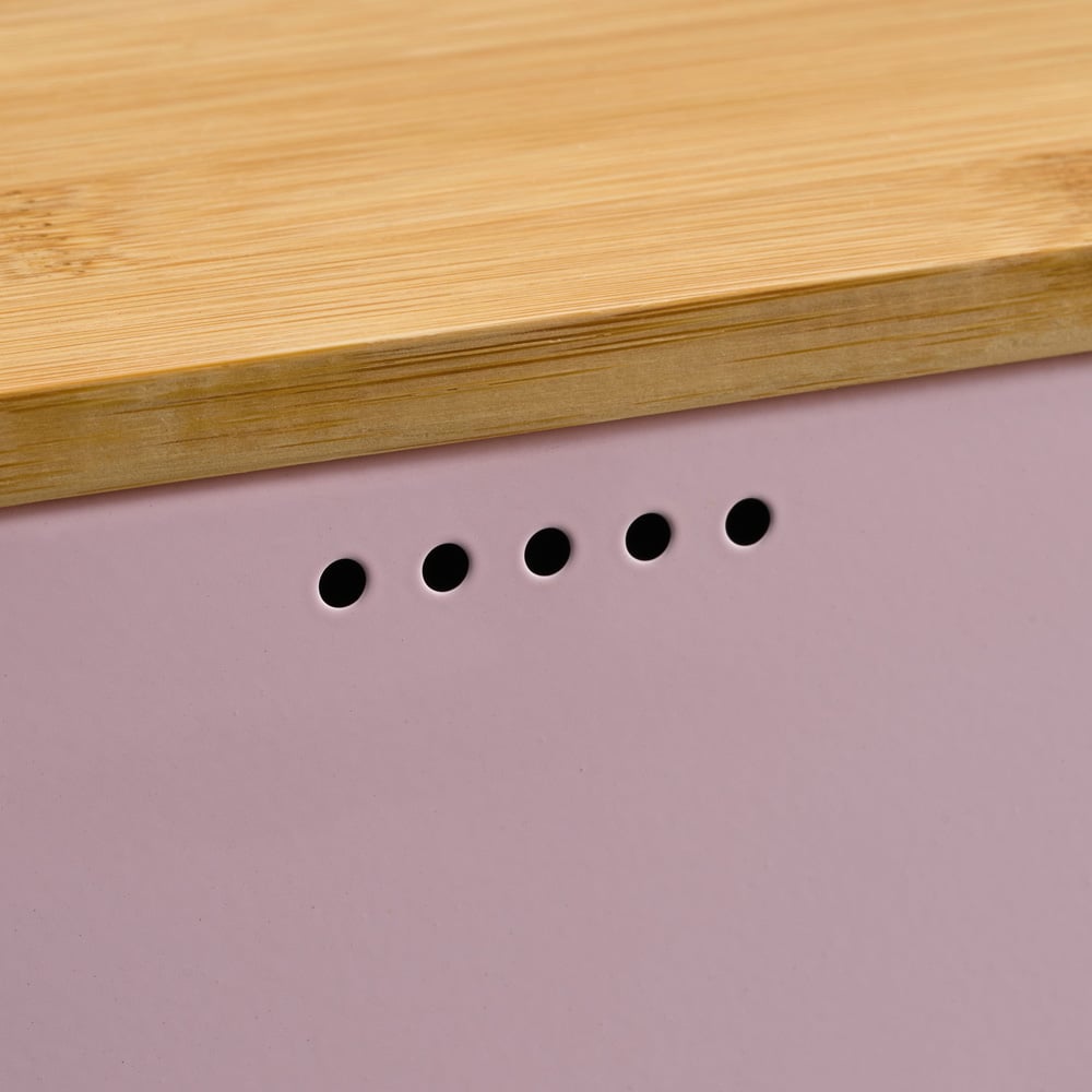 • Cooks Professional Pink and Silver Ribbed Bread Bin with Linen Bag and Bamboo Lid