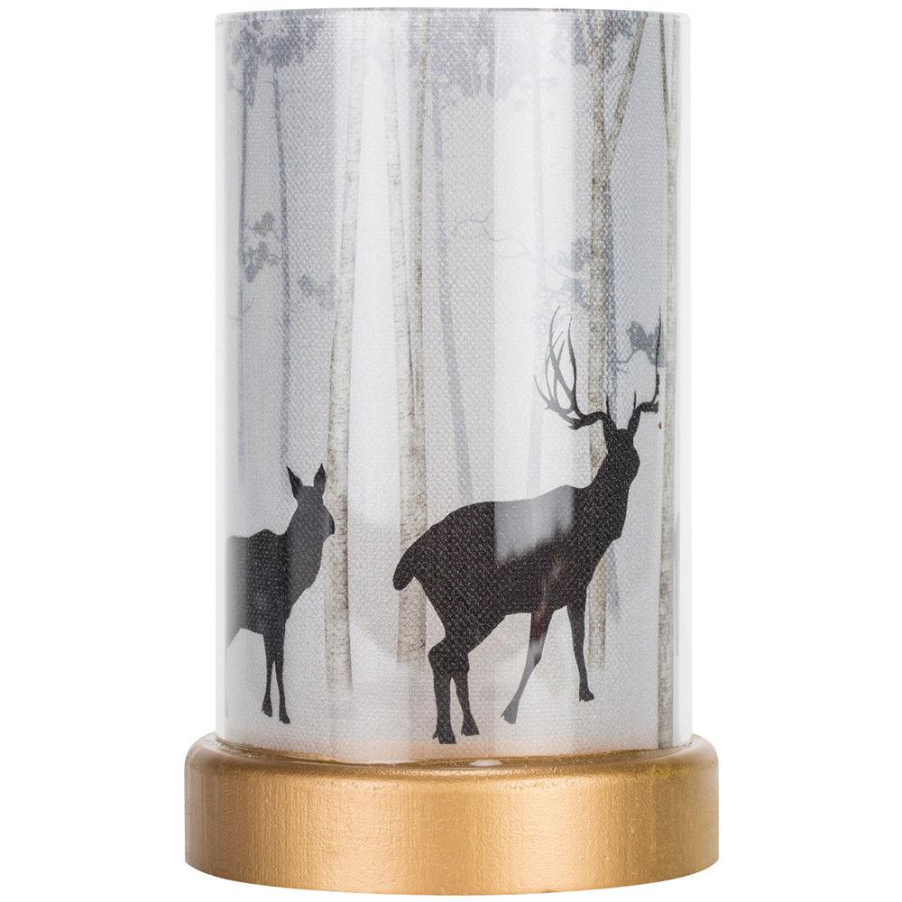 Magnificently rustic, this Stag Lantern displays a woodland scene beautifully illuminated by a warm white glow. Stood on a copper-toned wooden base, this ambient LED lit lantern features several stag and deer silhouette against the backdrop of trees.