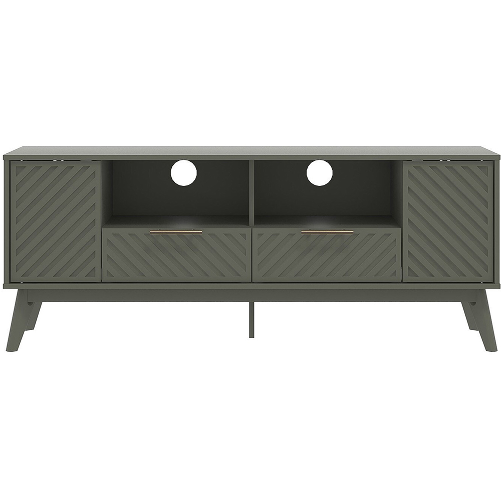 Designed to complement any existing living room environment, the Cora TV Unit is sure to help ensure your TV takes pride of place. This durable and stylish unit is perfect for those looking to accentuate their home with a touch of modern design. The unit has a contemporary and on-trend green tone to coordinate beautifully with your existing decor. It features sleek gold handles and a diagonal pattern for a bold, sophisticated touch. It has plenty of space on the tabletop, cupboards, and shelves for all your TV essentials and will look spectacular as a centrepiece in your living room.
