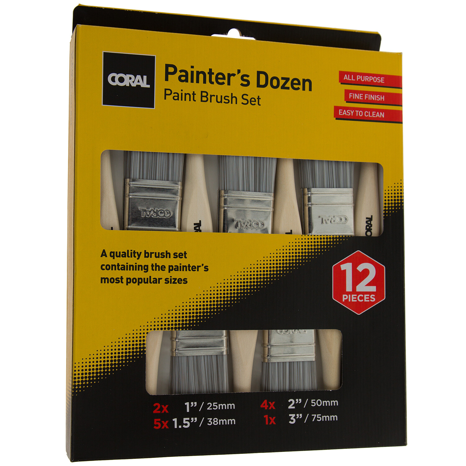 Get stocked up on essential paint brushes with this Coral Painters Dozen Paint Brush Set. Each brush features a chiselled head made from tapered high-quality filament for a long-lasting brush head. These finely tipped filaments offer great shape retention and a precise, smooth finish. Finished with FSC wood handles from well-managed forests, they're lightweight and easy to handle. Ideal for both professionals and DIY enthusiasts, this set is perfect for painting with water or solvent-based paints.