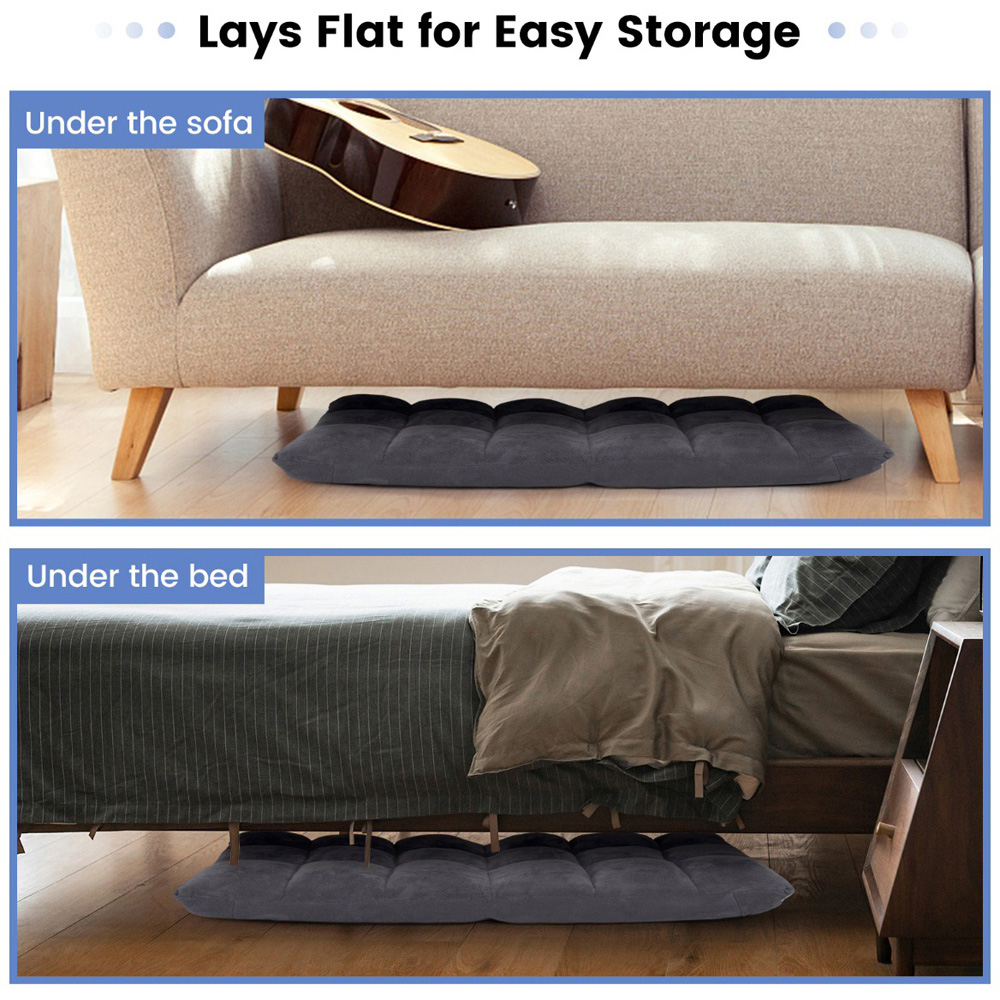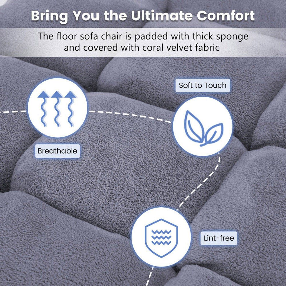 Settle in for victory with the next-level design of the Costway Grey Coral Velvet Floor Gaming Chair with Adjustable Back. This floor chair offers a 14-position adjustable backrest, allowing you to easily customise the angle from 0 to 84 degrees to suit your needs. The solid, flexible steel adjuster ensures smooth and effortless operation every time. Filled with ultra-thick, high-density sponge, this chair provides reliable and comfortable support. The soft coral velvet cover is skin-friendly and adds a warm touch for extra cosiness. Its sturdy frame is made of heavy-duty steel and supports up to 90kg. Plus, the base of the chair is protected with non-slip and wear-resistant 300D Oxford cloth for long-lasting use. This versatile chair fits any setting, making it perfect for meditation, reading, watching TV, and playing games. Best of all, it requires no assembly. Simply unpack and start using it. When not in use, the chair easily folds flat for convenient storage under a bed or sofa.