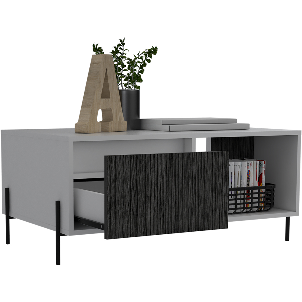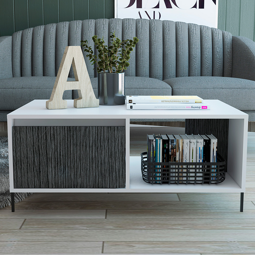 Add a touch of sophistication to your home decor with the Core Products Dallas Coffee Table. This white and carbon grey oak effect table has a subtle finish and it features a smooth top with an open shelf underneath for keeping your essentials. It also features a single drawer for keeping all your essentials and sturdy metal pin legs that give it a timeless look. This coffee table goes well with both traditional and contemporary interior spaces.