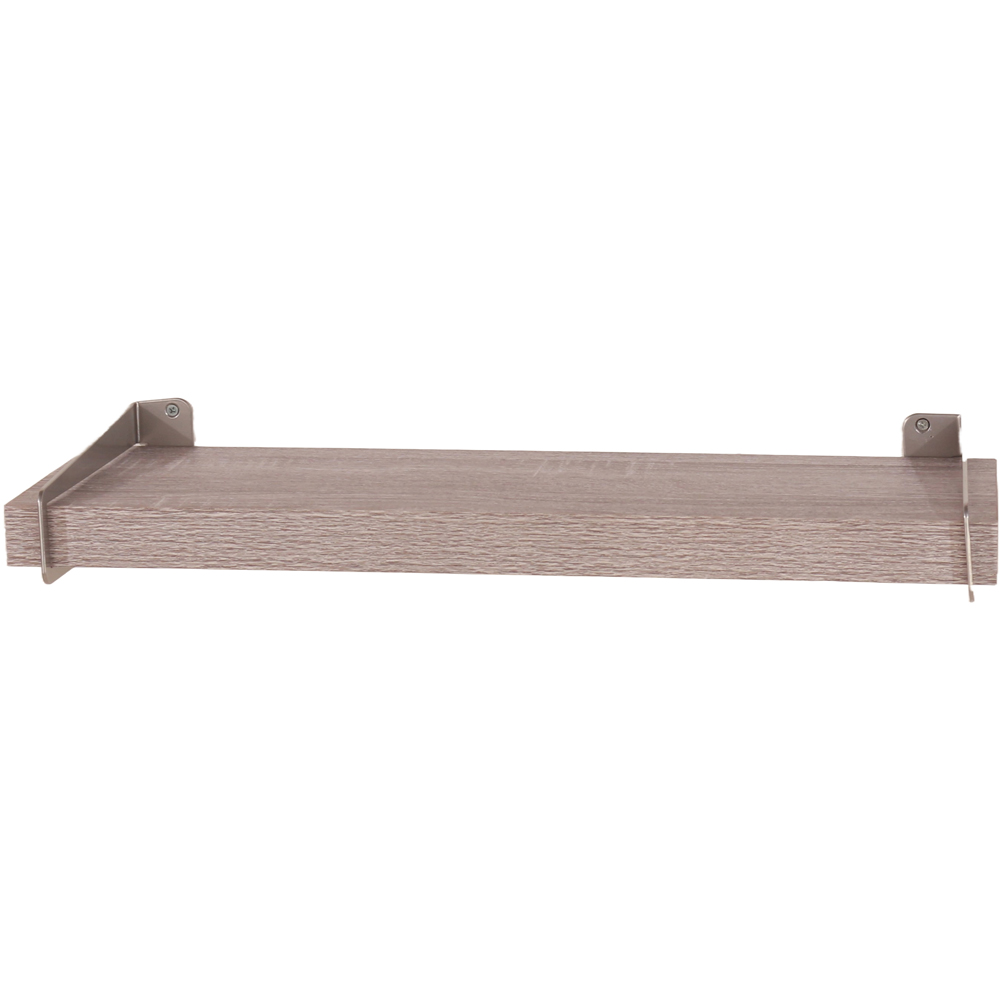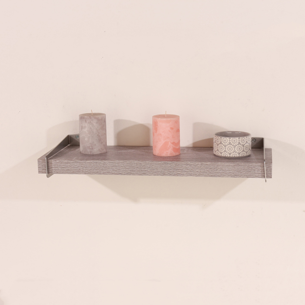 The Keer 80cm grey oak effect shelf kits offer a value for money versatile solution to your shelving needs. Each kit is complete with metal slide on side brackets to create a stylish look and an eye catching element for any room. Helps make full use of your wall space by organising and displaying your daily items, also available in oak effect and 60cm size. Maximum loading if fixed to a solid brick or wood wall is 2kg.
