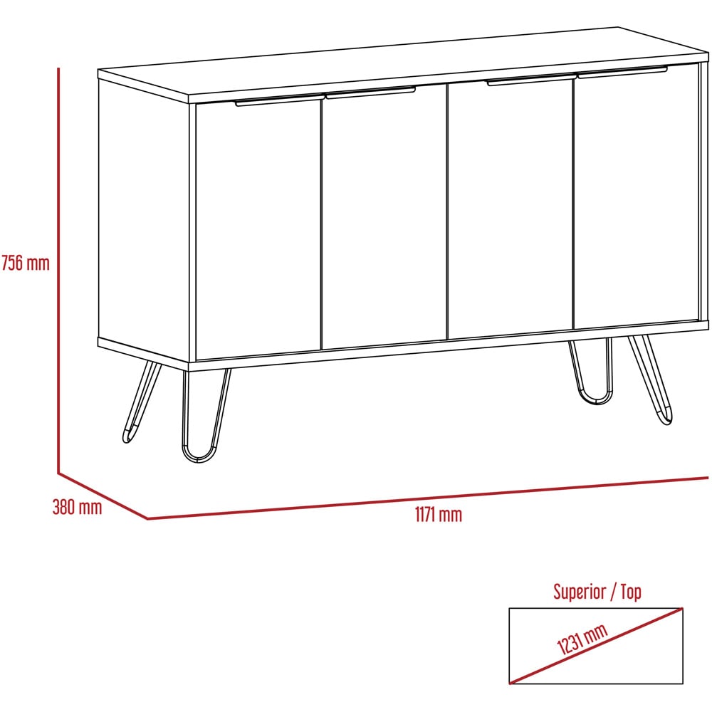 Organize your essentials in a classy way with this Nevada Large Sideboard by Core Products. This sideboard features four doors with sleek metal handles and inner shelves, which offer enough space to store your daily essentials. It is made of easy-to-clean, hardwearing, smoke oak effect with bleached oak effect melamine doors and also features real metal pin legs. With its classy appearance, this sideboard can be the perfect choice to add a touch of elegance to your decor.