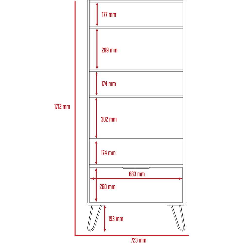 Store your books classy with this Nevada Display Bookcase by Core Products. This bookcase features one flip-down door with a sleek metal handle and five shelves, which offer enough space to store your books or other household items. It is made in easy-to-clean, hardwearing, smoke oak effect foil with a bleached oak effect door and features real metal pin legs. This display bookcase can be the perfect choice to add an eye-catching piece to your home decor.