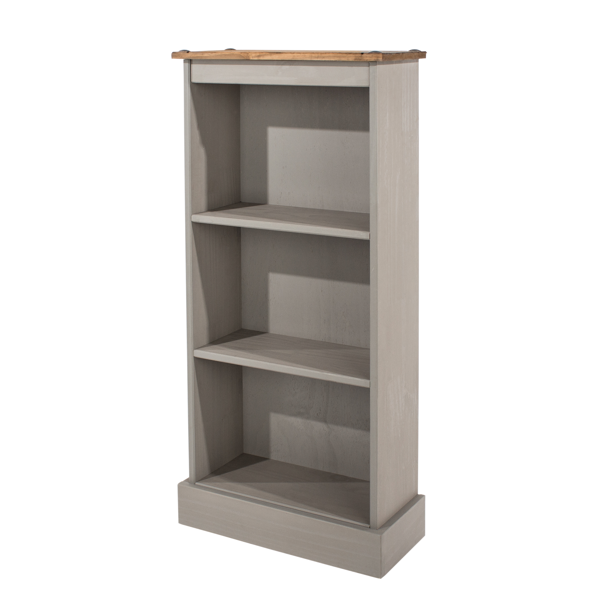 Corona 3 Shelf Grey Wax Finish Low Narrow Bookcase Image