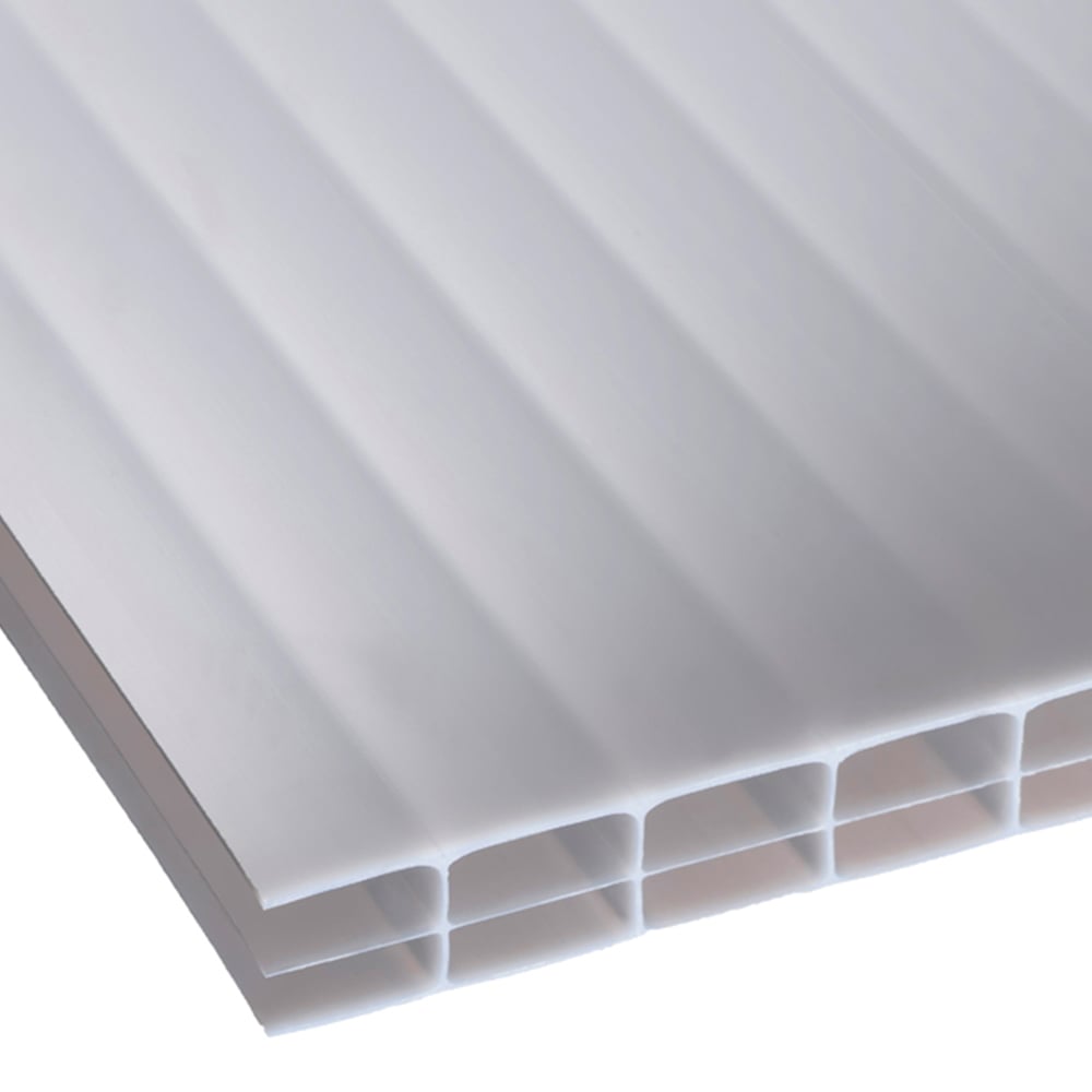 16mm Multiwall Polycarbonate is the ideal choice if you are installing a carport or canopy, lean-to or greenhouse. It's lightweight making it easy to handle, cut and install. Equipped with a UV protection layer, it is well suited for external applications. Polycarbonate's strength to weight ratio and excellent impact resistance provides long term durability which results in lower maintenance costs over time. Choose opal for a softer diffused natural light transmission. Accessories available include: Glazing bar base, Glazing Bar End Cap, Glazing Bar Cap, Side Flashing, Fixing Button, Breather Tape, Aluminium Sealing Tape.