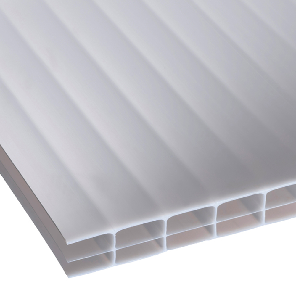 16mm Multiwall Polycarbonate is the ideal choice if you are installing a carport or canopy, lean-to or greenhouse. It's lightweight making it easy to handle, cut and install. Equipped with a UV protection layer, it is well suited for external applications. Polycarbonate's strength to weight ratio and excellent impact resistance provides long term durability which results in lower maintenance costs over time. Choose opal for a softer diffused natural light transmission. Accessories available include: Glazing bar base, Glazing Bar End Cap, Glazing Bar Cap, Side Flashing, Fixing Button, Breather Tape, Aluminium Sealing Tape.