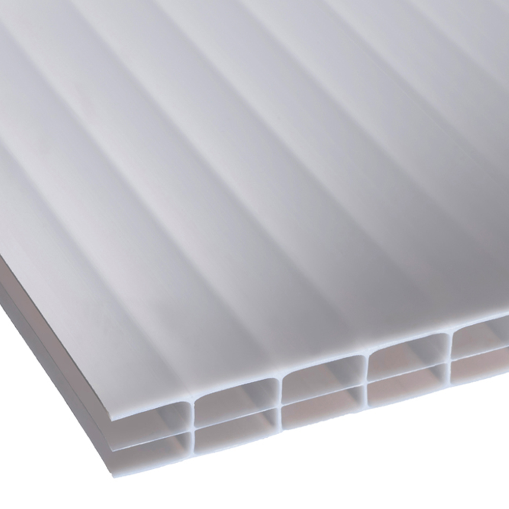 16mm Multiwall Polycarbonate is the ideal choice if you are installing a carport or canopy, lean-to or greenhouse. It's lightweight making it easy to handle, cut and install. Equipped with a UV protection layer, it is well suited for external applications. Polycarbonate's strength to weight ratio and excellent impact resistance provides long term durability which results in lower maintenance costs over time. Choose opal for a softer diffused natural light transmission. Accessories available include: Glazing bar base, Glazing Bar End Cap, Glazing Bar Cap, Side Flashing, Fixing Button, Breather Tape, Aluminium Sealing Tape.