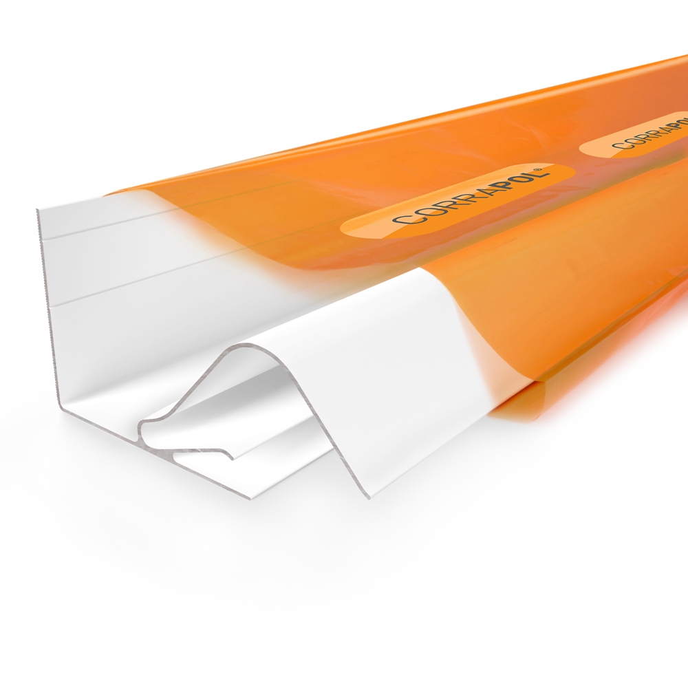 Secure corrugated sheets safely against a wall using this Corrapol White Rock N Lock Wall Flashing Mill. This wall flashing is a unique aluminium side flashing perfect for use when the side is against a wall. Easy to install, simply rock and lock the side flashing onto the end corrugation of Corrapol sheets to fasten, allowing simple installation. Made from aluminium, this wall flashing gives maximum longevity and superior protection for Corrapol sheets. Size: 6m.