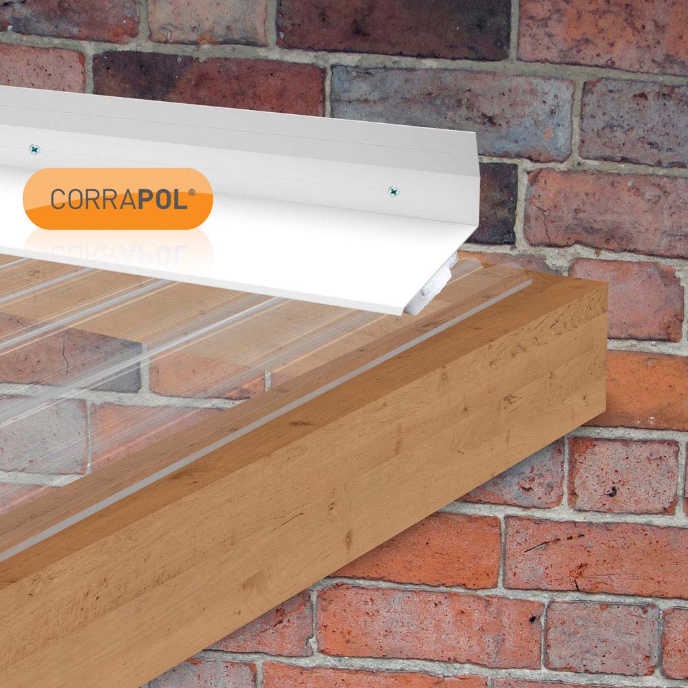The 3m Corrapol White Rock n Lock Wall Top Flashing is a unique aluminium side flashing for use with corrugated sheets where the side is against a wall. Simply rock and lock the side flashing onto the end corrugation of Corrapol sheets to secure, allowing for incredibly fast and easy installation. Complete with a foam gasket, it is extruded from strong aluminium, giving maximum longevity and superior protection for sheets.