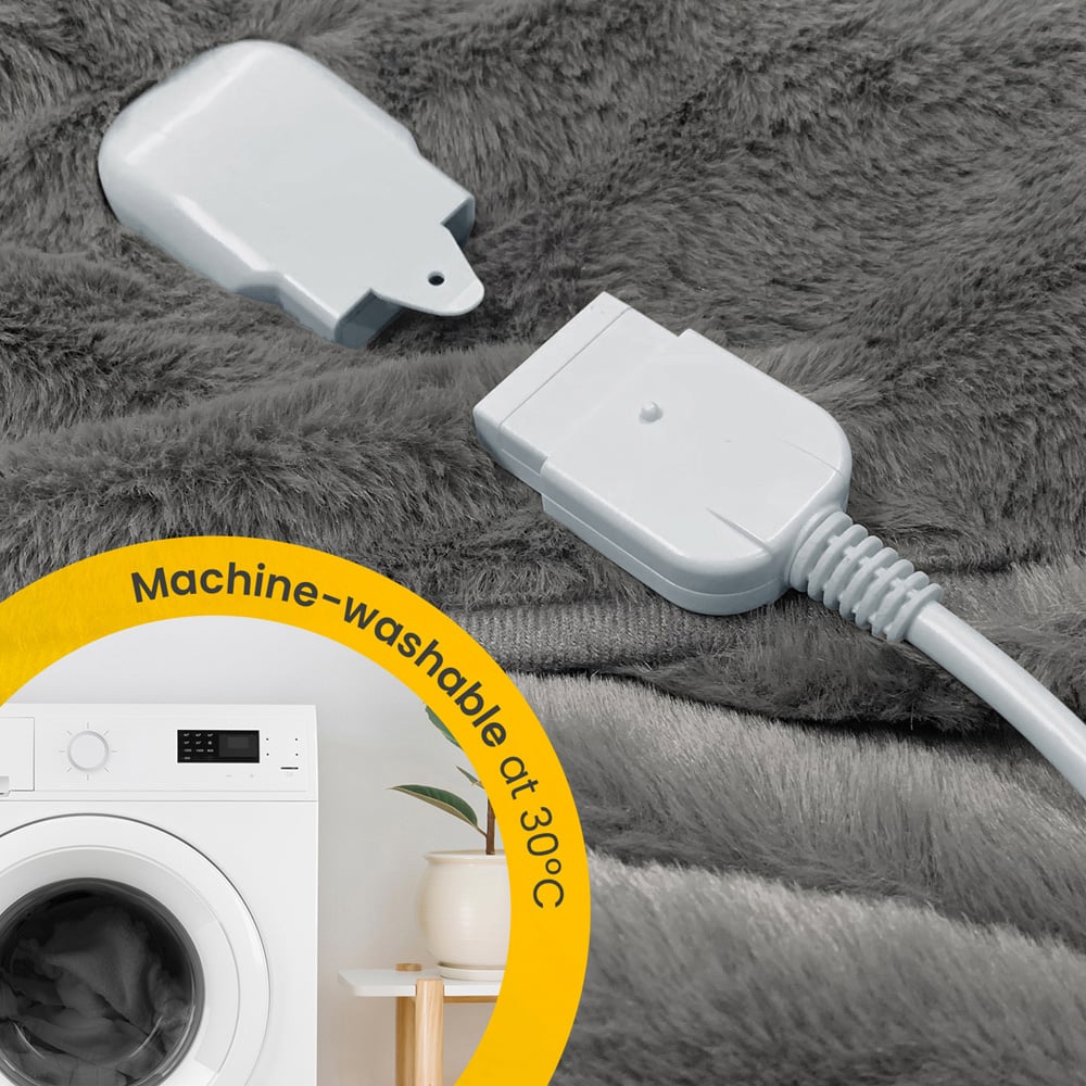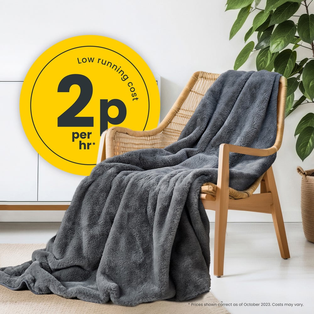 Experience unparalleled softness and comfort with Cosi Home Grey Faux Fur Electric Heated Throw 160 x 130cm. It is designed to keep you warm with its luxurious faux fur and 9 fully adjustable heat settings. This excellent combination of warmer soft faux fur and microfleece dual combination will keep you nice and cosy. It takes 3p per hour to run. It has a built-in 9-hour timer with an auto shut-off function to work around your schedule. It is easy to care for as it is 100% machine washable, you just need to remove the detachable remote control and pop the throw into the washing machine at a low temperature. Additionally, it features advanced overheat protection, that will automatically turn off in dangerous situations for peace of mind.