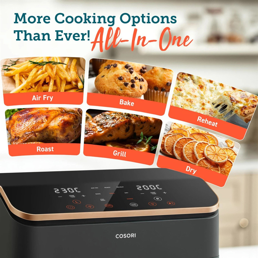Transform family meal times with a large dual basket air fryer that features two separate 4.25L cooking zones, making it easy to prepare different dishes at once without cross-contamination and giving everyone exactly what they want. Sync Cook and Sync Finish functions let you match settings or finish two meals together, while a wide temperature range from 35–230°C means you can air fry, roast, bake, grill, and more with perfect precision. Enjoy up to 55% faster cooking and use up to 97% less oil for healthier results, plus energy savings that make this air fryer a smart choice for busy homes. Non-stick, dishwasher-safe baskets ensure cleanup is quick and simple, so you can spend more time enjoying your food and less time washing up.