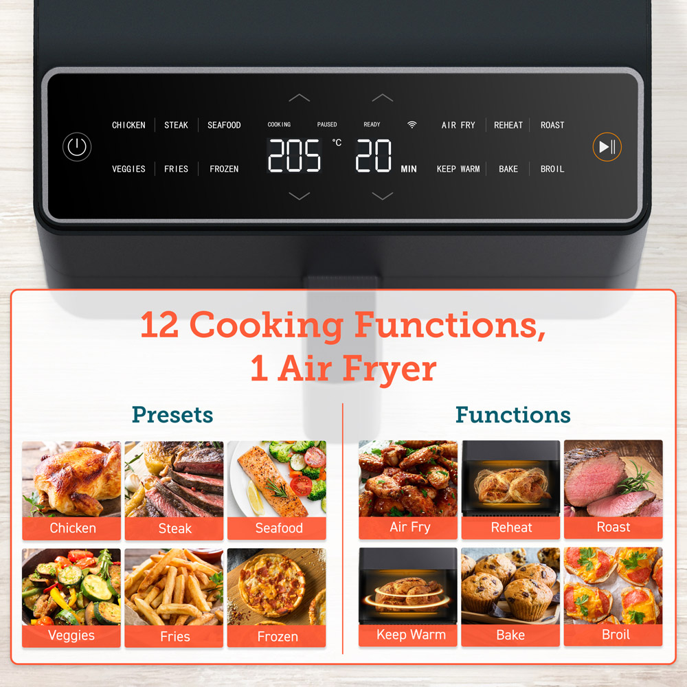 Revolutionize your cooking with the Cosori Dual Blaze 6.4L Air Fryer. Designed for convenience, efficiency and flavour. With its spacious 6.4-litre capacity, you can effortlessly prepare meals for the whole family or entertain friends—all in one go. Featuring dual heating elements and 360 Thermal IQ technology, this air fryer ensures faster and more even cooking, so you can say goodbye to shaking or flipping your food. Enjoy the health benefits of cooking up to 50% faster than traditional ovens while reducing oil content by up to 85%, delivering the same crispy taste without the guilt.