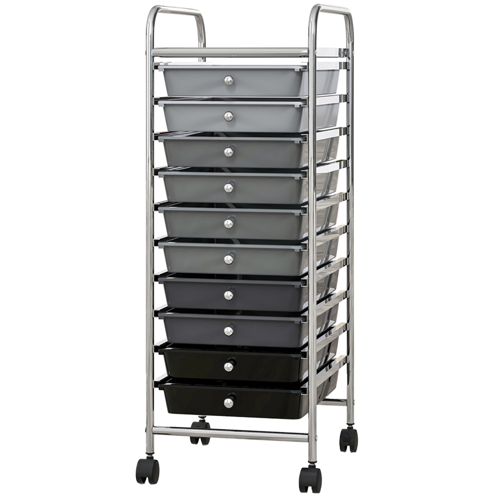Renovate your organisational skills with the Costway 10 Drawer Grey Mobile Storage Trolley. Consisting of 10 substantial drawers, this trolley provides you ample storage space to keep your daily essentials organised. Moreover, these different coloured drawers come in handy for classifying the placement of your items. It includes four universal wheels that swivel 360 degrees for ease in moving it around. Meanwhile, two of these wheels are equipped with brakes to keep them stable and stationary. Each drawer of this trolley cart has a round handle, offering convenience to open and close the drawer. On top of that, the smooth slide rail of the drawer is equipped with an interlock system, which can lock the drawer well and prevent it from falling. This multifunctional 10-drawer storage shelf provides huge space and can be used in homes, living rooms, entryways, bathrooms, schools, and garages, apart from offices. Therefore, this storage trolley plays a crucial and practical role in offering organised and neat storage. The main frame of this drawer storage cart is constructed of premium iron material coated with chrome, giving you a long-time service. This 10-drawer rolling cart is designed to be service-durable and resilient to deformation. Besides, the assembly process is easier with essential accessories and a detailed manual provided.