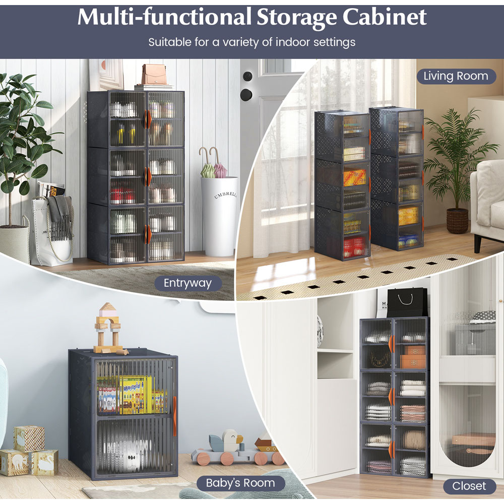 Maximise your space and maintain impeccable order with the 6 Pack 12-Grids Plastic Stackable Shoe Storage Boxes, featuring clear magnetic doors for easy visibility and access. These robust storage solutions are crafted from high-quality PP and PET materials, ensuring durability and resistance to deformation. The 12-grid design accommodates various shoe types and other items, making it perfect for decluttering spaces like entryways, living rooms, or closets. The precise connections allow for secure stacking and versatile configurations, while the foldable design offers a practical solution for saving space when not in use. With easy assembly and a design that keeps contents fresh and visible, these boxes are a must-have for any organised home.