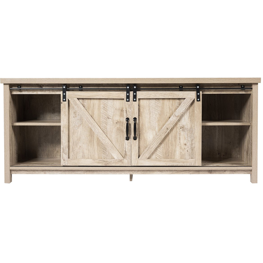 Elevate your living space with the Costway 2 Door 2 Shelf Grey TV Unit. Perfect for 60 inch TVs, this unit is crafted from environmentally friendly chipboard that combines durability with a sleek, aesthetic appeal. This piece isn't just a TV stand; it's a versatile addition to any room, thanks to its sliding barn doors that not only offer adjustable concealment but also enhance the decor with a touch of farmhouse charm. The ample storage space, including two open centre compartments and two cabinets, makes it easy to organize all your media and accessories, while the sturdy structure supports a significant weight, ensuring longevity and stability. Whether used in the living room, entryway or as a kitchen storage solution, this TV cabinet adapts to your needs and maintains its beauty with minimal effort.