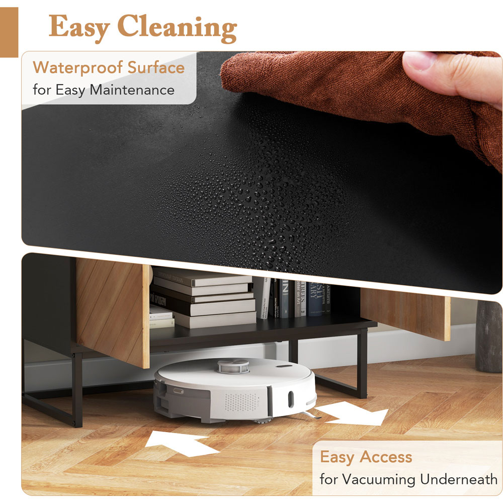 Elevate your home decor and organization with the sleek Sideboard Buffet Cabinet, perfect for the living room. Featuring a spacious top and two large compartments, this cabinet offers ample storage to keep your essentials neatly organised while adding a touch of natural elegance with its fir wood grain decorated doors. The contemporary design, enhanced by sturdy metal legs, ensures stability and ease of maintenance, making it a practical yet stylish addition to any setting.