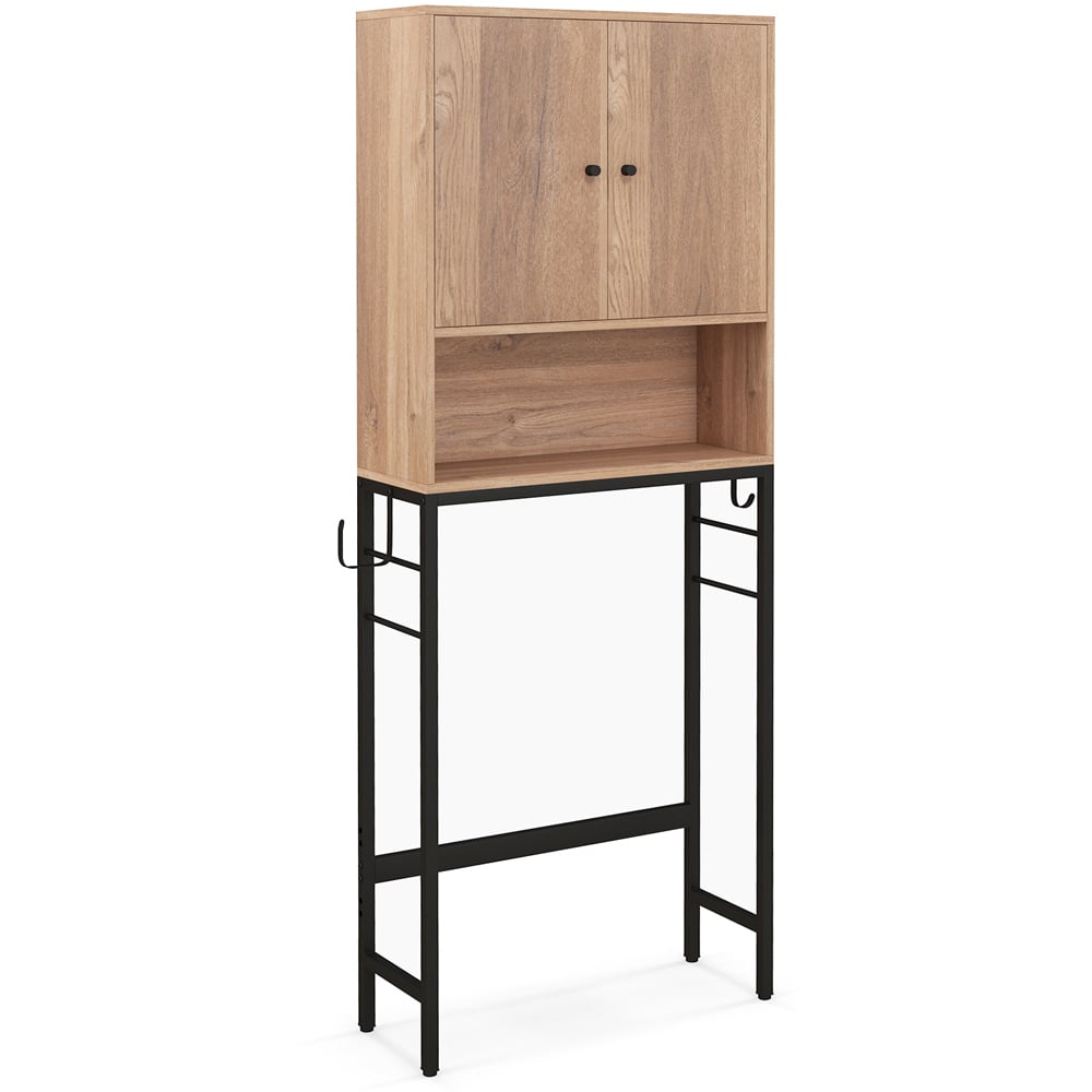 Elevate your bathroom's functionality and style with the Over the Toilet Storage Cabinet, expertly crafted to fit neatly above your toilet, providing a smart, space saving solution. This unit not only offers ample storage with its two-tier cabinet, side hooks, and open compartment but also features an adjustable shelf to cater to your specific storage needs. Constructed from high-quality metal tubing and reinforced with crossbars, it boasts a robust 20kg weight capacity per tier and is both water and rust resistant, ensuring durability. The sleek natural finish complements any bathroom decor, while the included safety features like the anti-tipper and adjustable footrest enhance stability and safety. With easy-to-follow instructions and numbered parts, assembly is straightforward, making it an ideal choice for organizing toiletries, cosmetics, paper, and towels efficiently.