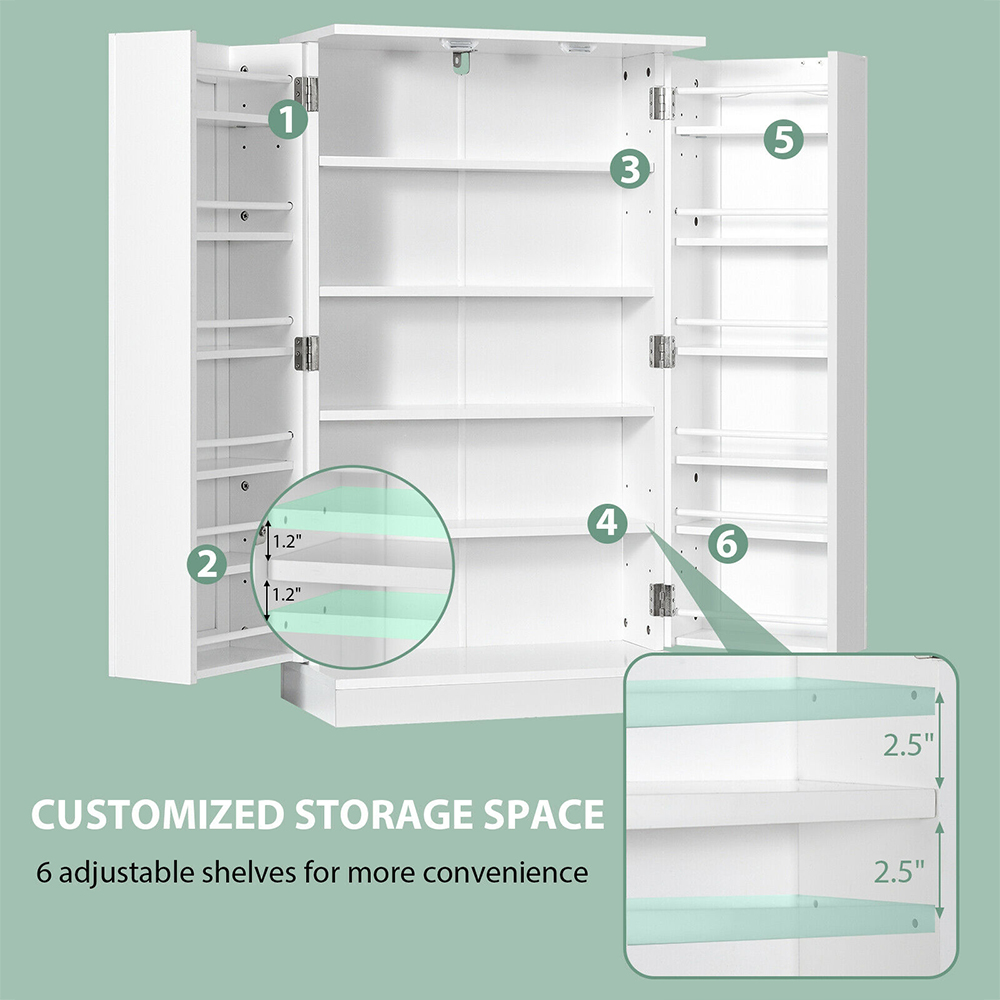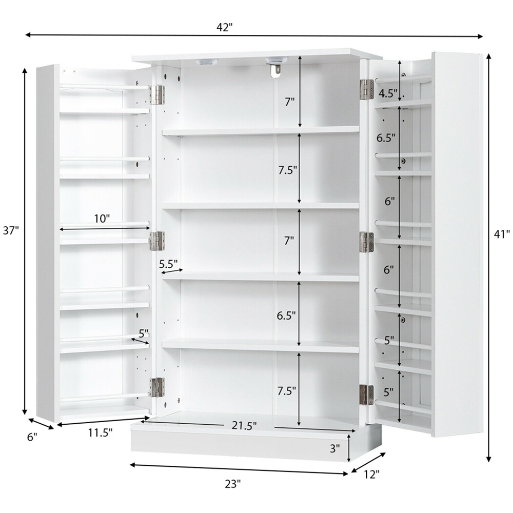 Costway 2 Door White Pantry Cabinet with 6 Adjustable Shelves