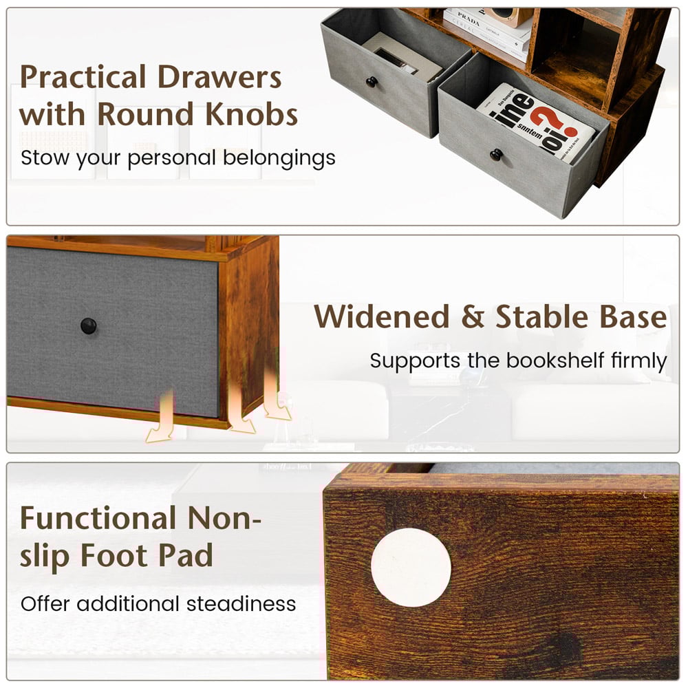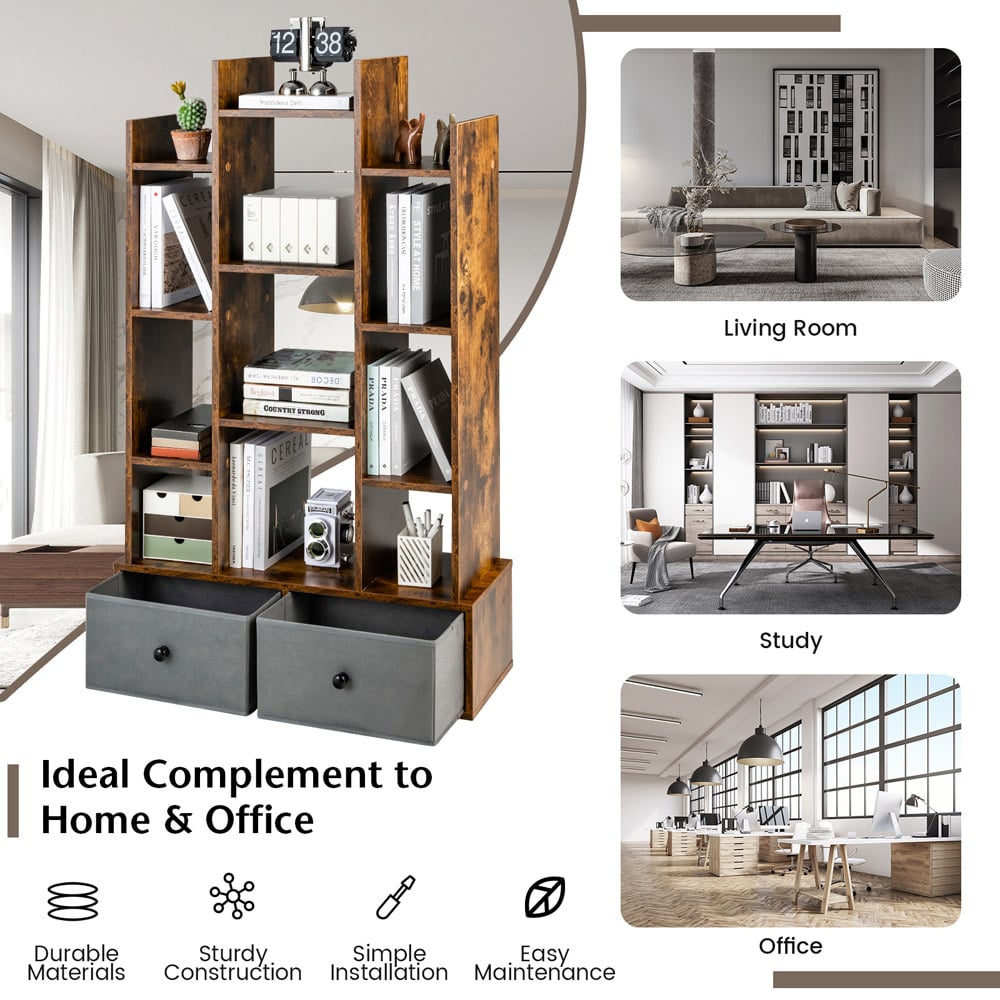Transform your living space into an organised haven with the Costway 2 Drawer 12 Shelf Brown Bookcase. This stylish and versatile storage solution not only offers ample room for your books, magazines, and decorative items across its 12 open shelves but also features two large, foldable drawers for additional storage. Crafted from high-quality engineered wood, this bookshelf guarantees durability and stability, supporting up to 300 pounds. The anti-toppling devices ensure safety, making it ideal for homes with children or pets. Whether placed in your study, living room, or bedroom, its elegant white finish and minimalist design will complement any decor while saving valuable floor space.