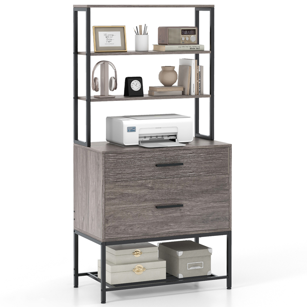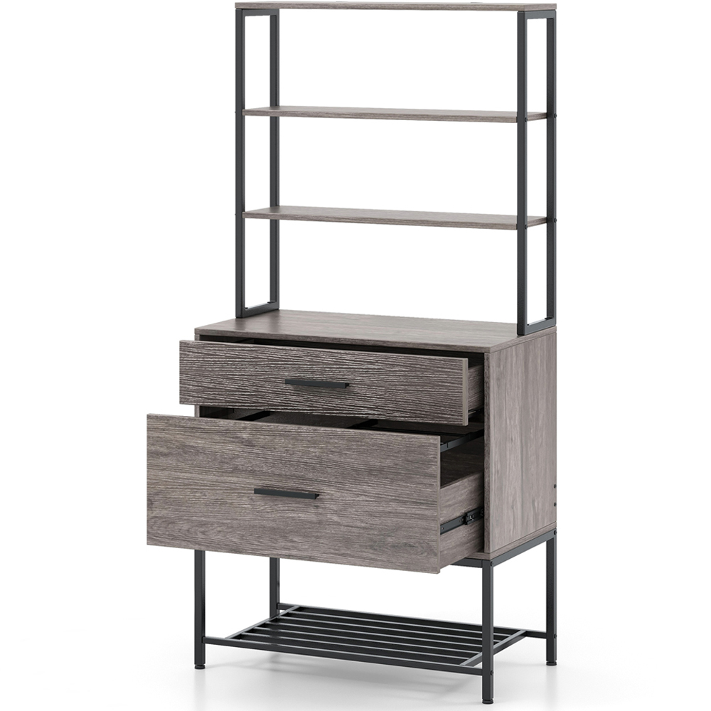 Costway 2 Drawer 4 Shelf Grey Freestanding Printer Stand