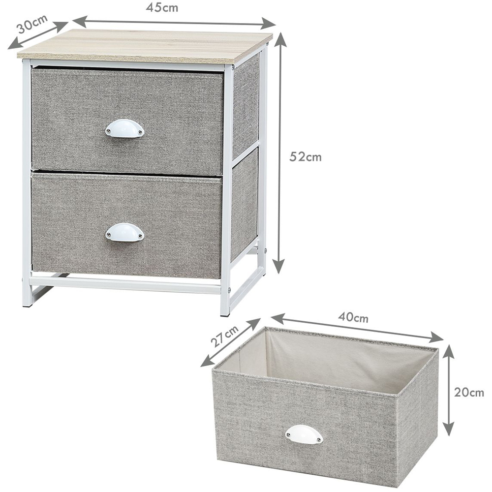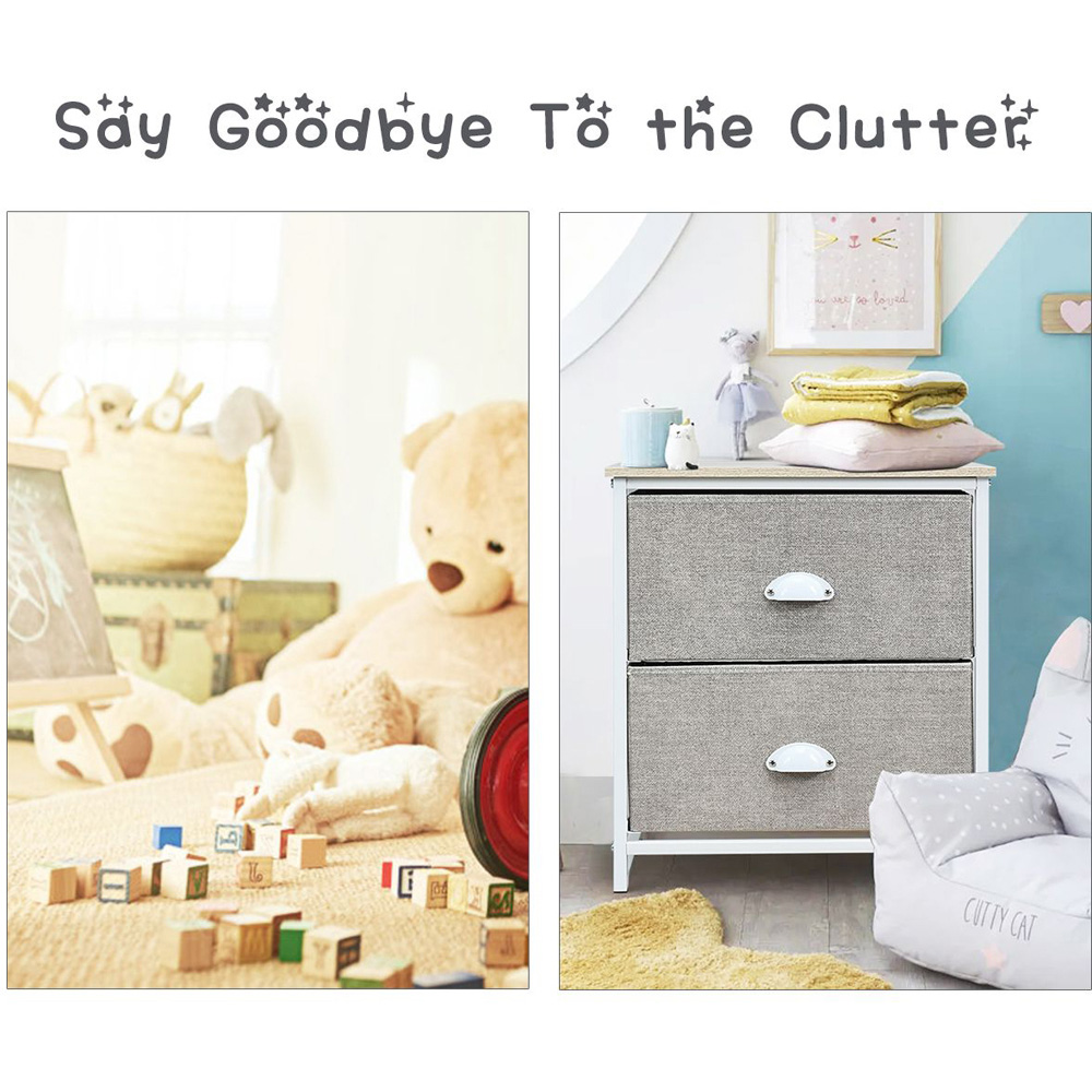 Discover aesthetics and functionality with the Costway 2-Tier White 3/4 Fabric Bedside Storage Cabinet with Foldable Drawers. This storage cabinet with folding drawers is the ultimate solution to organize the clutter in your room. It comprises two drawers and a spacious top, providing ample storage to stack your essentials. This versatile dresser cabinet is ideal for organizing your daily supplies and giving your room an aesthetic, organized finish. The cabinet features an all-metal construction that is durable and has a smooth, easy-to-clean MDF top. The powder-coated metal frame effectively prevents rust, making this dresser cabinet a sturdy addition to your home for years. The convenient handles make it easy to access your items at all times for added practicality. You can use this multifunctional storage cabinet in varied rooms, and you can effortlessly fold the drawers when not in use. It is easy to install, making it a great addition to your home decoration.
