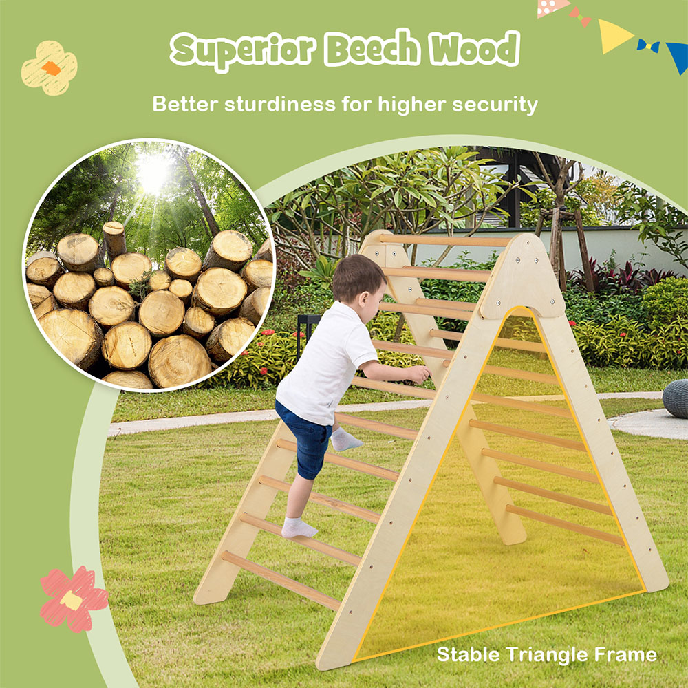 Let your child's imagination run wild with the Costway 2-in-1 Beige Kids Triangle Tent Climber. Whether used for quiet relaxation or thrilling adventure, this versatile set caters to all moods. The sturdy beech wood frame and soft cotton pad ensure both comfort and safety, making it the perfect addition to any play space for kids aged 1 and above.