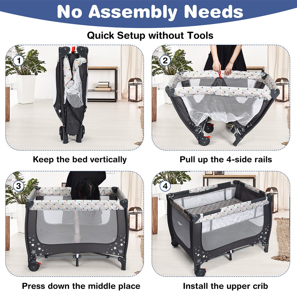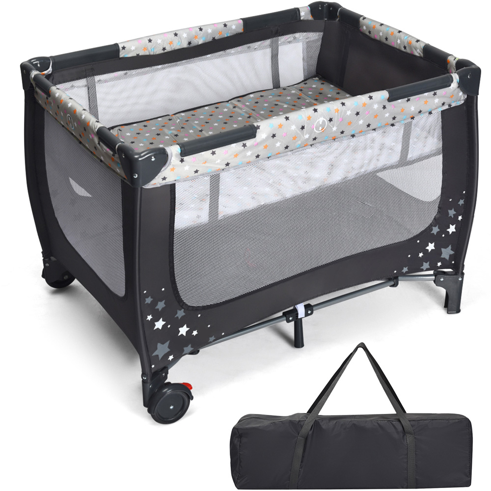 Ensure your little one's safety and comfort with the Costway 2 in 1 Grey Foldable Baby Playpen with Lockable Wheels and Mattress. This innovative playpen is equipped with a comfortable mattress and a detachable bassinet, catering to various needs effortlessly. Its design features two rolling wheels with brakes, making it simple to move the playpen between rooms securely. The four-sided mesh cloth enhances air circulation and allows you to keep an eye on your baby without any hassle. Constructed from a sturdy steel frame, this playpen promises durability and long-lasting use. It's easy to set up following the detailed instructions provided, and you can fold it swiftly for convenient storage or transport. The use of safe, non-toxic materials ensures your baby's health is never compromised, making this playpen a perfect choice for parents seeking both functionality and peace of mind.
