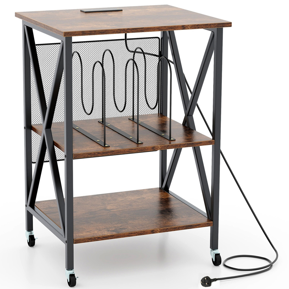 Elevate your space with the rustic brown turntable stand, ingeniously designed to blend functionality with style. This versatile piece not only organises your vinyl records, books, and CDs but also charges your devices with its built-in charging station featuring two AC power outlets, one USB port, and one Type-C port. The smooth-rolling wheels ensure easy movement across any surface, with two lockable ones for added stability. Whether you use it as a record storage rack, a bedside table, or a mini coffee table, this stand's superior craftsmanship and easy-to-clean wear-resistant wooden boards guarantee both durability and ease of maintenance.