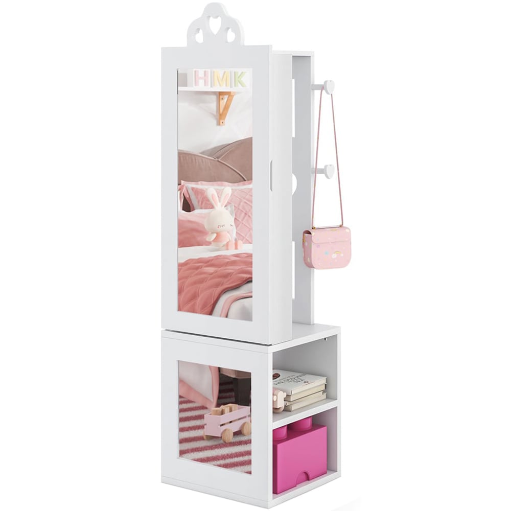 Offering a lavish arrangement of 10 earring slots, 60 ring slots, and even more hooks and shelves, say goodbye to cluttered dresser tops. Watch delight in your child's eyes as they explore the full-length mirror and hang their tiny coats on the chic rods. Designed with love, the heart-shaped decoration and robust safety features like an anti-tipping kit make this 117cm standing cabinet not just adorable but also super stable and safe. Limited stock - grab yours now and bring elegance and peace of mind to your child's playground! If you are looking for such a product, do not hesitate to buy it! Unlock a World of Organization: Discover the ultimate storage solution for your little one's treasures with our spacious jewellery armoire. With 10 earring slots, 9 necklace hooks, 60 ring slots, 3 bracelet rods, 2 storage shelves and 3 rear storage shelves, it keeps every piece of jewellery and accessory in its place. A Multi-Functional Marvel: This unit is a 3-in-1 masterpiece! It's a jewellery organizer, a full-length mirror for endless dressing-up sessions, and a coat rack with 4 hanging rods. It's the perfect space-saver, turning any room into a fashion haven. Safety Reimagined: We've taken safety to heart with our compliant design. Rest easy knowing that your child's jewellery cabinet is not just a place for keepsakes but also a fortress of security and reliability. A Touch of Loveliness: Add a dash of sweetness to your child's space with the heart-shaped decoration. The jewellery armoire is a declaration of love and care, making every moment spent in front of it a heartwarming experience. Enhanced Stability: With an anti-tipping kit and non-slip foot pads, the 117cm standing cabinet is a rock of stability. It boasts a sturdy construction for safety, ensuring that every precious moment is enjoyed without worry.