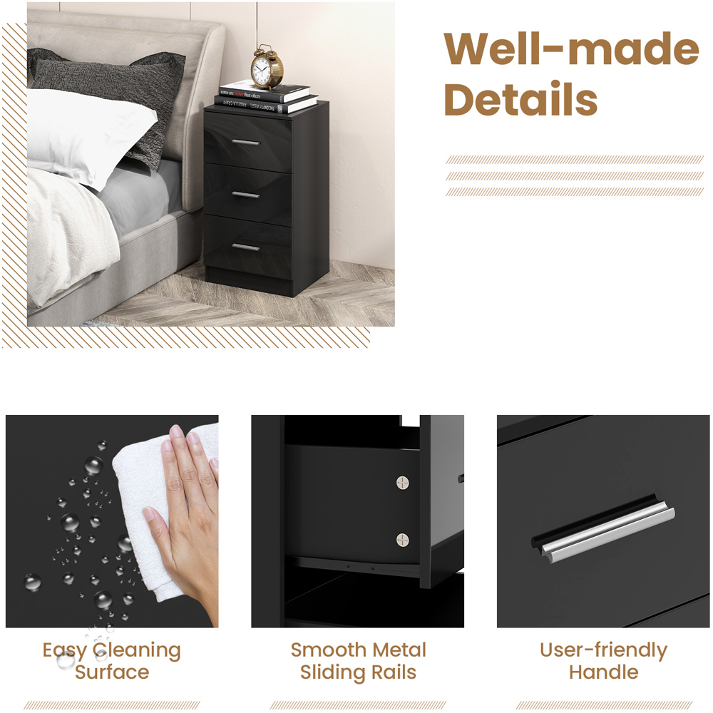 Maximise your storage and ensure safety with the sleek Three-Drawer Wooden Dresser Cabinet, featuring an anti-toppling device. Perfect for organising everything from clothing to stationery and skincare products, this dresser is crafted from durable P2 engineered wood, ensuring it withstands the test of time without deforming. Its compact design makes it an ideal addition to any corner of your home, be it the bedroom, living room, or hallway. The comfortable metal handles and smooth sliding drawers enhance functionality, while the minimalist black finish complements any decor style. Safety is a priority with the included anti-toppling device, making this dresser suitable for homes with children and pets.