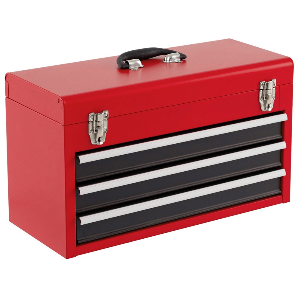 Experience both durability and functionality with the Costway 3 Drawer Red and Black Portable Steel Tool Box, a robust solution for your storage needs. Crafted from reinforced steel and finished with a premium powder coating, this toolbox offers exceptional stability and resistance against wear and rust, making it ideal for long-term use. It features a top tray and three drawers, all equipped with ball-bearing slides for smooth, silent operation and easy access to your tools. The double-latch design enhances security, ensuring your tools remain safely inside while the protective EVA foam liners prevent scratches to the box's surface. Whether for household DIY, art and craft storage, or professional use in garages and workshops, this stylish red and black toolbox combines practicality with a sleek design, making it a must-have for any task.